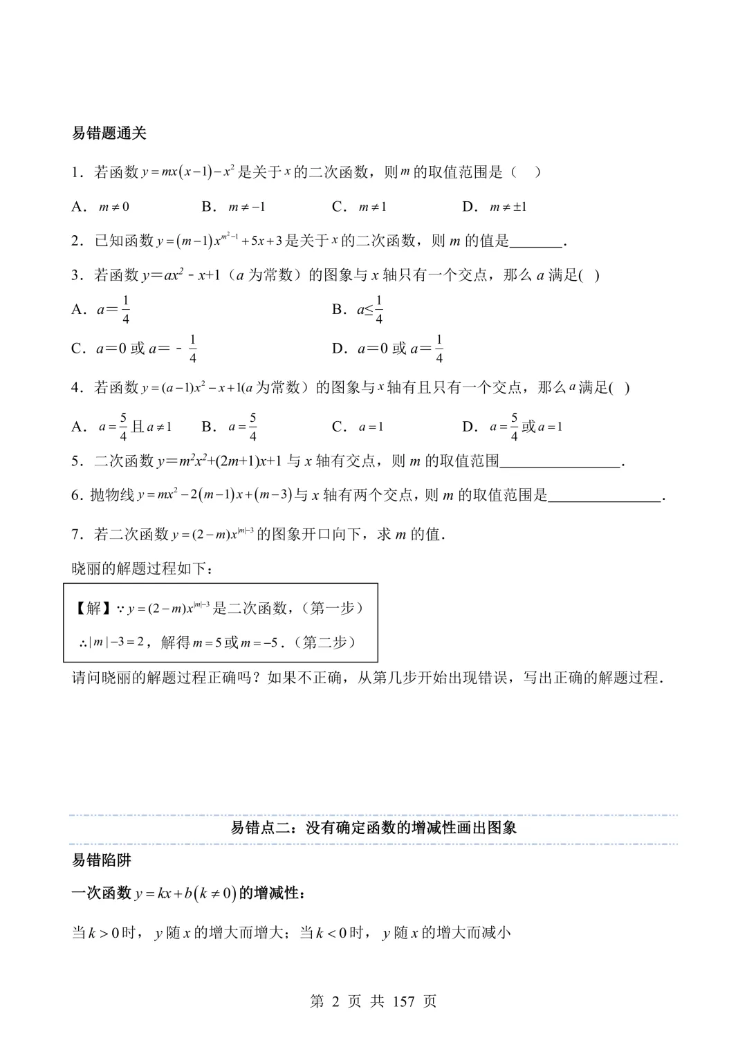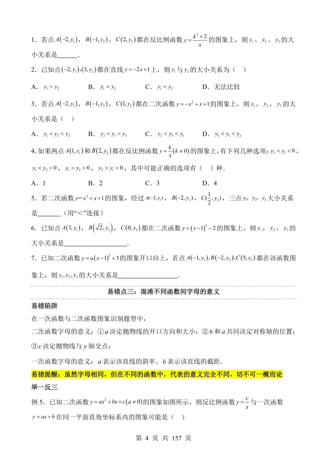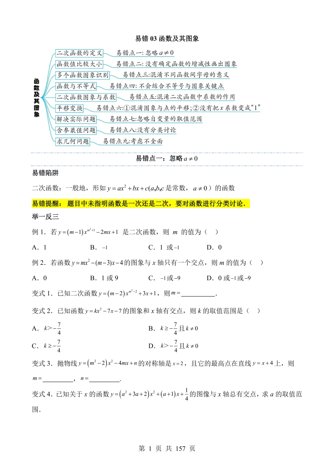 【可打印 | 157页】2026年中考数学易错点03 函数及其图象(九大易错分析+举一反三+易错题通关)