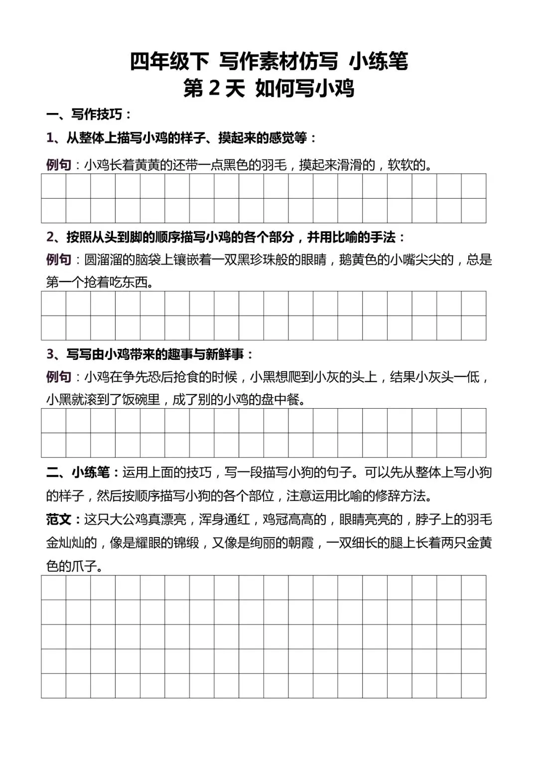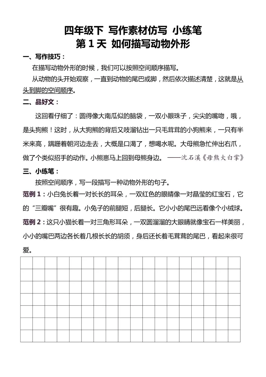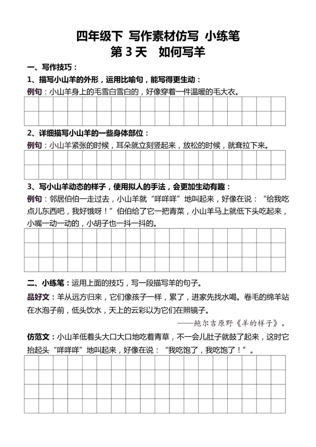 统编版语文四年级下册《好文仿写小练笔》,可下载打印 今天,小编给大家带来了统编版语文1-6年级(下)各类预习资料。大家可以根据自己的喜好自行选择、打印。让孩子多多预习,多多练习,为学习的进步,打下一个坚实的基础。欢迎大家分享+下载+收藏哦~ 小学语文资料 完整版请拉底回复 点击图片,查看大图 ▼▼▼▼ 篇幅有限,仅展示部分图片 点击阅读原文也可领取 点击“阅读原文” 领取完整电子版