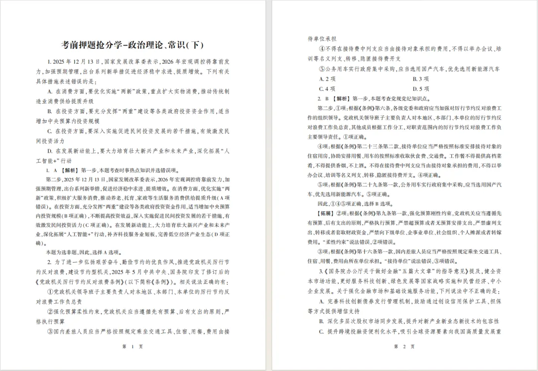 26年重庆市考已进入刷题冲刺阶段,应该有不少同学想要高质量的题目。图图帮大家整理了一份,高清版2026省考考前YA题抢分学-政治理论、常识60题题本&解析都有。格式如下: