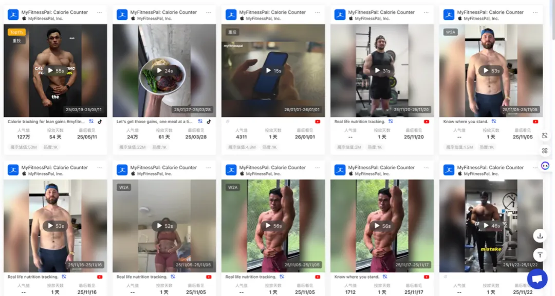 「MyFitnessPal」高热度的广告素材|图源:广大大数据