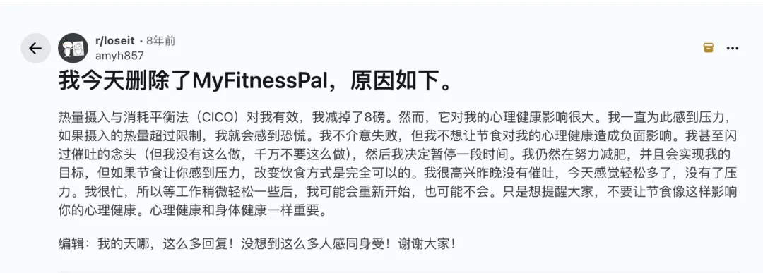 「MyFitnessPal」”的用户讨论|图源:Reddit
