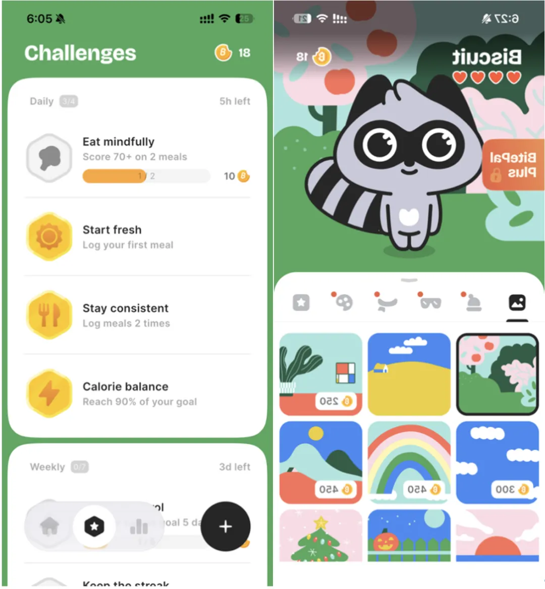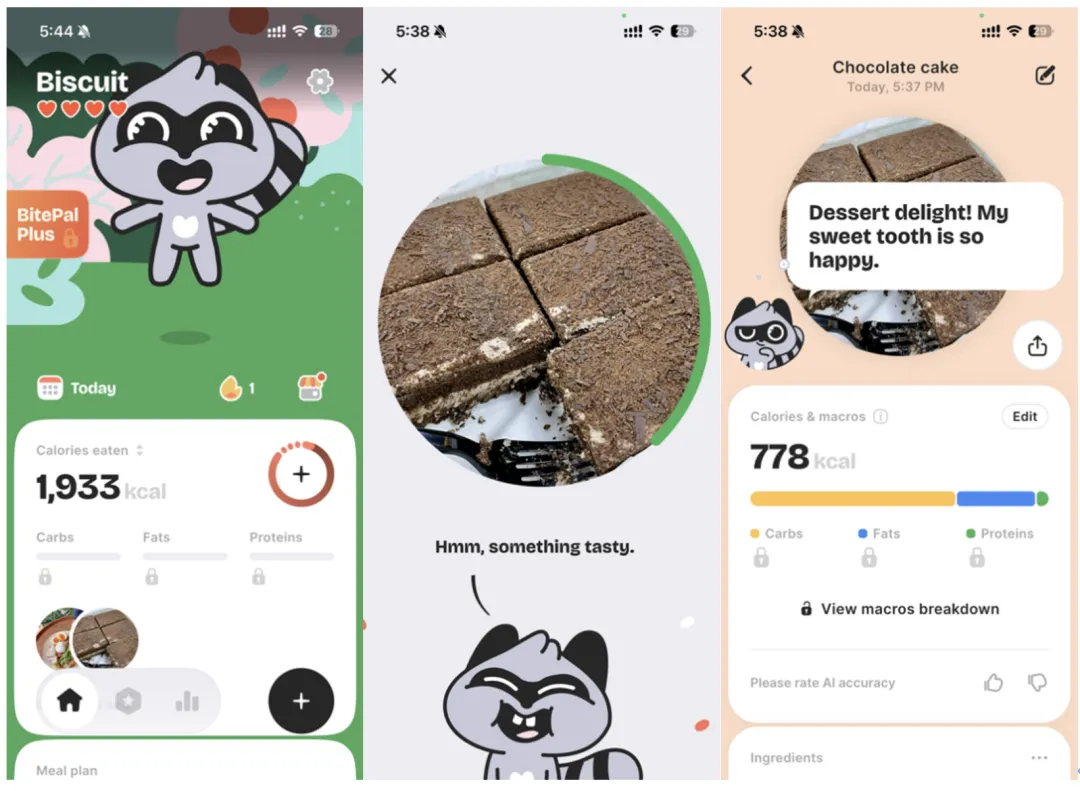 Reface 看到了这点,并决定做出改变。「BitePal」于 2024 年 6 月发布,它引入了一只可爱的小浣熊陪伴用户,用“养宠”替代追踪数据。