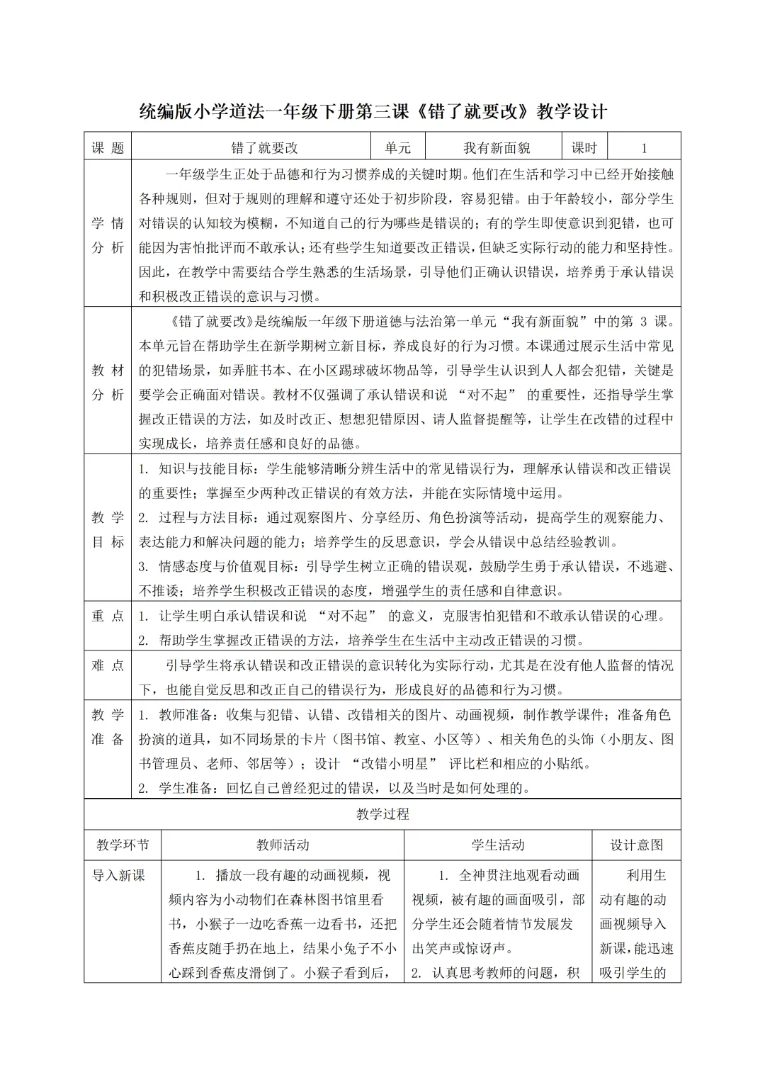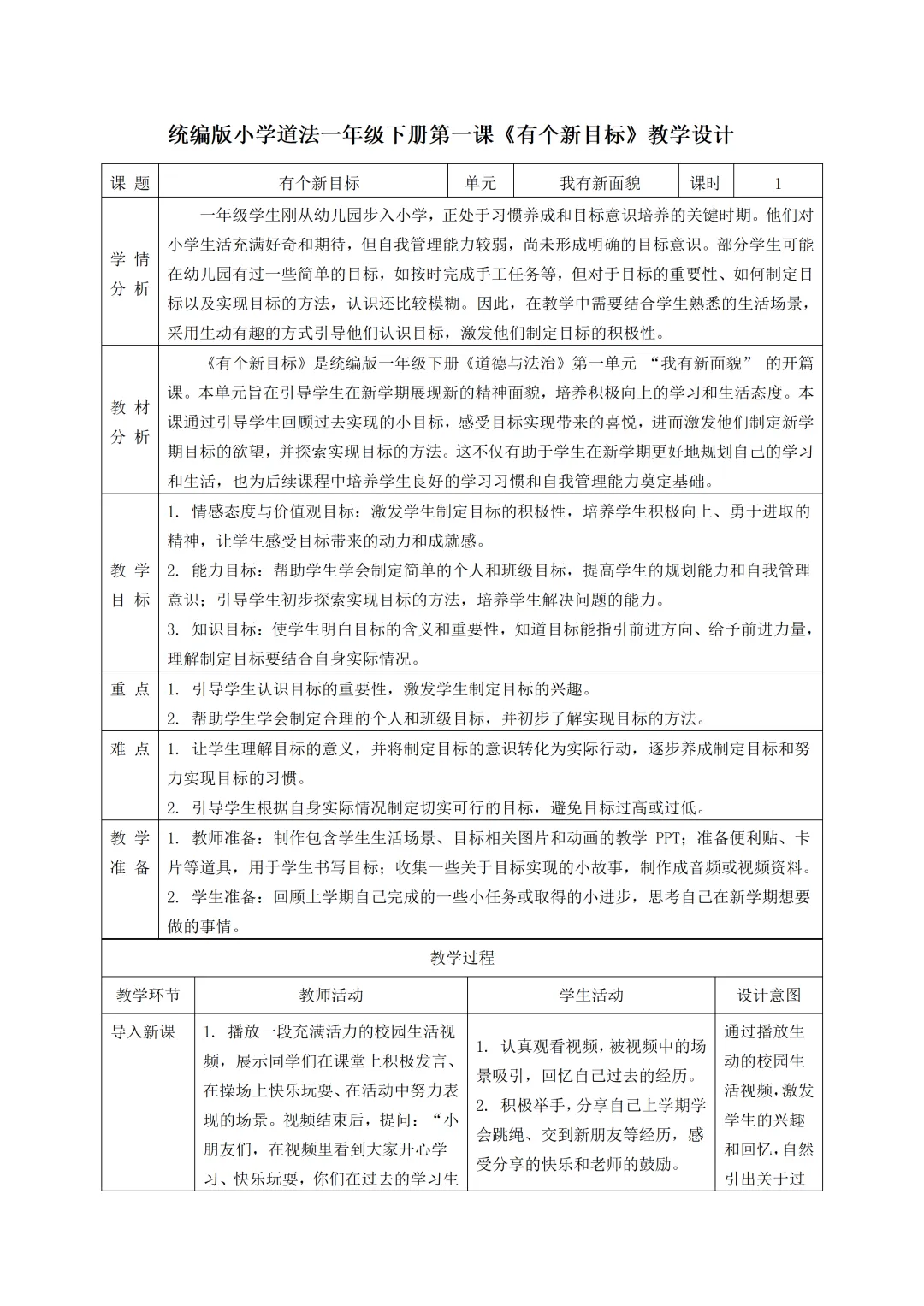 部编人教版一年级道德与法治下册全册教案Word 文档可直接下载打印