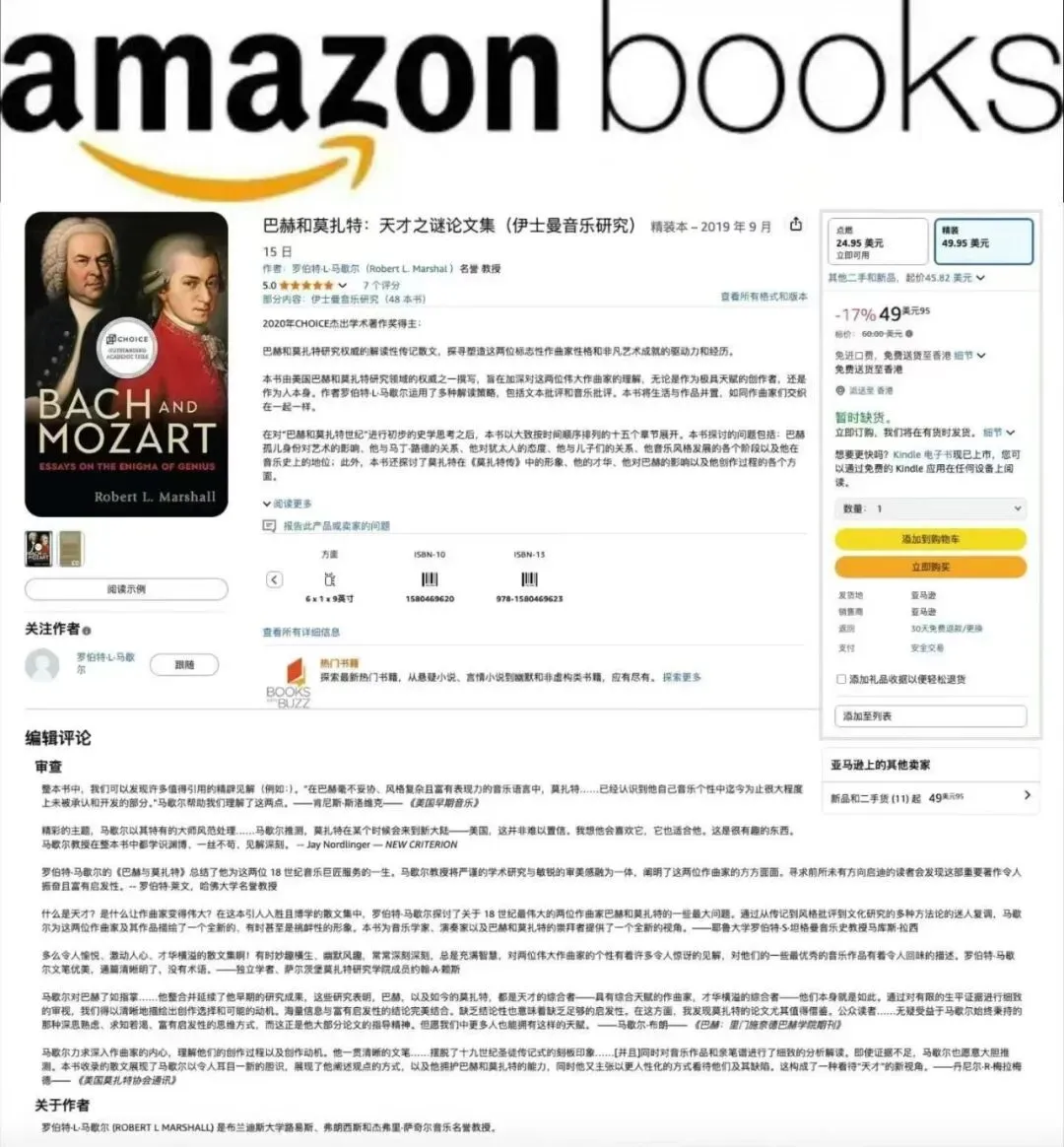 8️⃣更多介绍地址:https://www.amazon.com/Bach-Mozart-Essays-Eastman-Studies/dp/1580469620