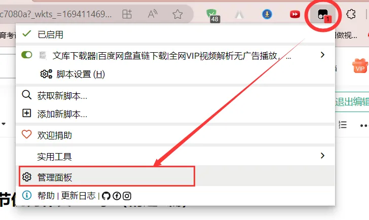 下载文馆下载脚本,访问大叔编制的脚本网址,执行安装操作,内置了众多网站的下载工具,实用性强!