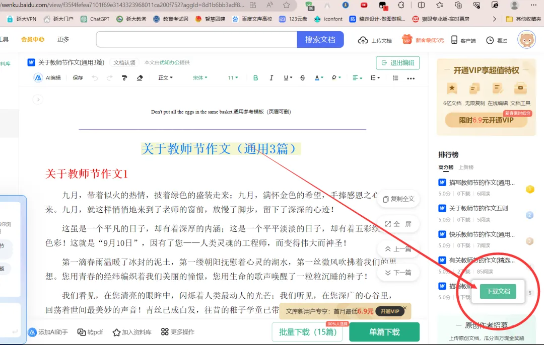 [链接]百度文库右方弹出界面,点选“下载文档”。