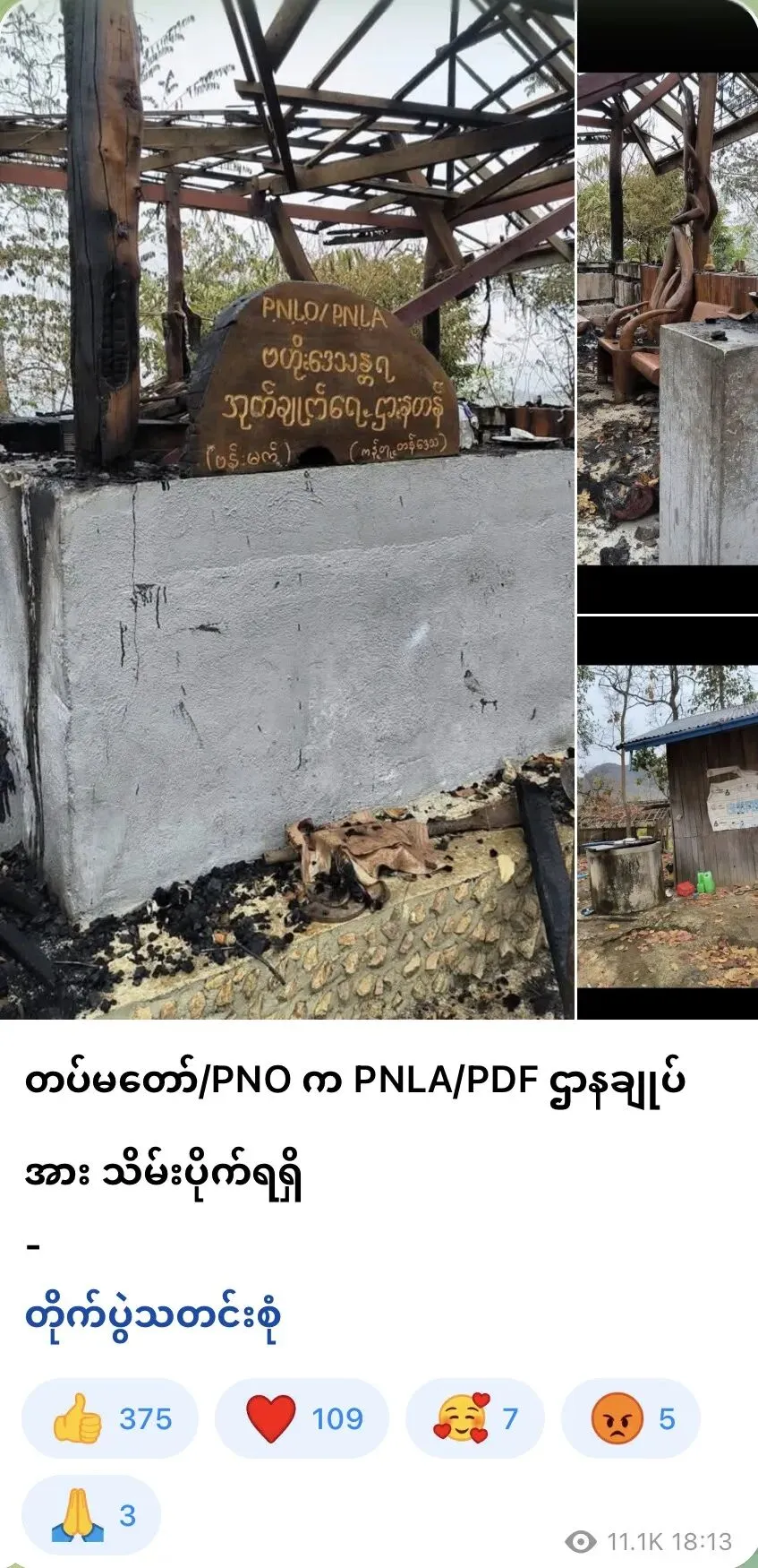 据战事消息称,军方与PNO联合行动,已成功攻占 PNLA/PDF总部。相关战斗细节及后续情况仍在持续更新中。