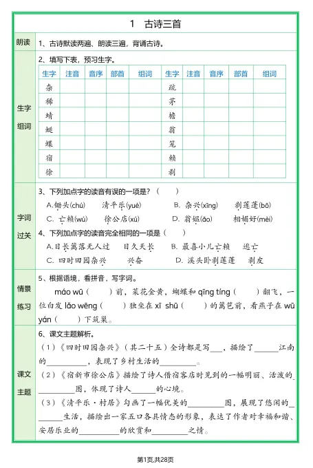 四年级下册语文《全册1-28课预习单》,有答案,电子版可打印 四年级下册语文《全册1-28课预习单》,有答案,电子版可打印 (文末有答案及电子档下载方式) 完整版获取方式一 长按复制到夸克或者微信打开,即可获取完整版 https://pan.quark.cn/s/1f97782d4989 完整版获取方式二 长按识别图中二维码保存到网盘即可获取完整版 答案及电子档下载方式:点击左下角“阅读原文”即可获取。 ——友情说明—— 本微信公众账号分享的资源均通过网络等公共合法渠道获得,仅供试用!版权属于原出版机构或影像公司,本资源为电子载体,传播分享仅限于家庭使用与交流心得、参考和辅助购买决策,不得以任何理由在商业行为中使用,若喜欢此资源,建议购买实体产品。文章中的视频及图片均来自网络,版权归原作者或原出版社所有。如有侵权,请及时联系删除。