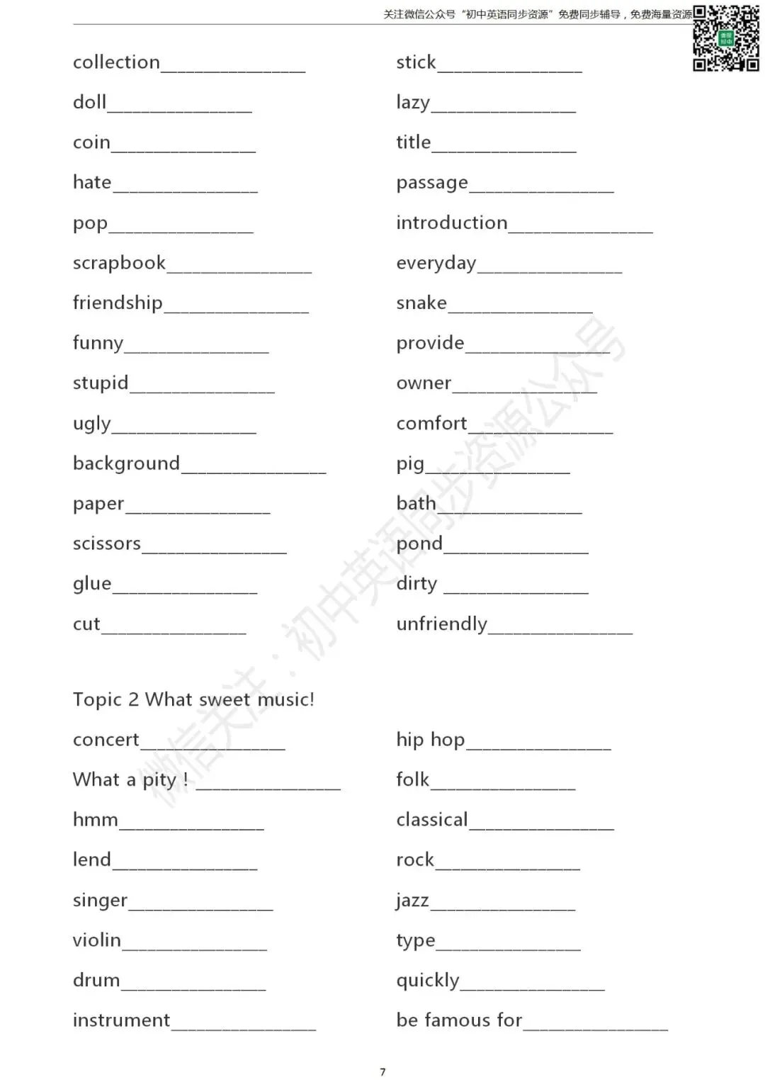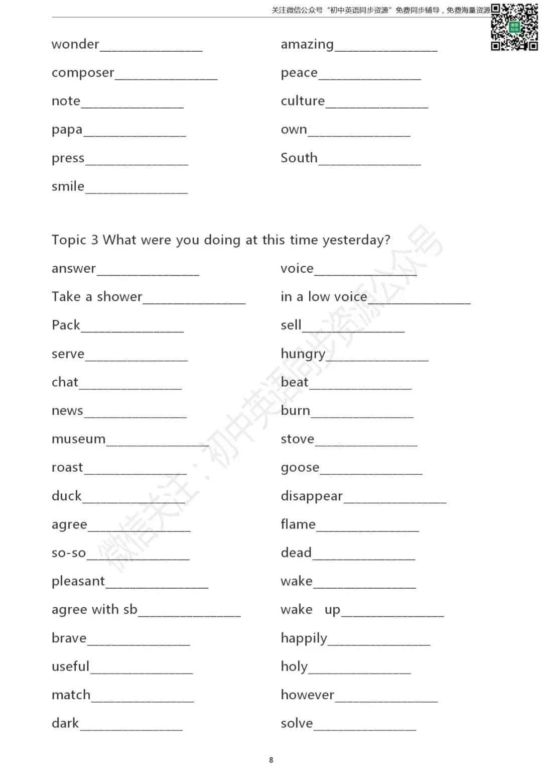 长按二维码关注“仁爱版初中英语”