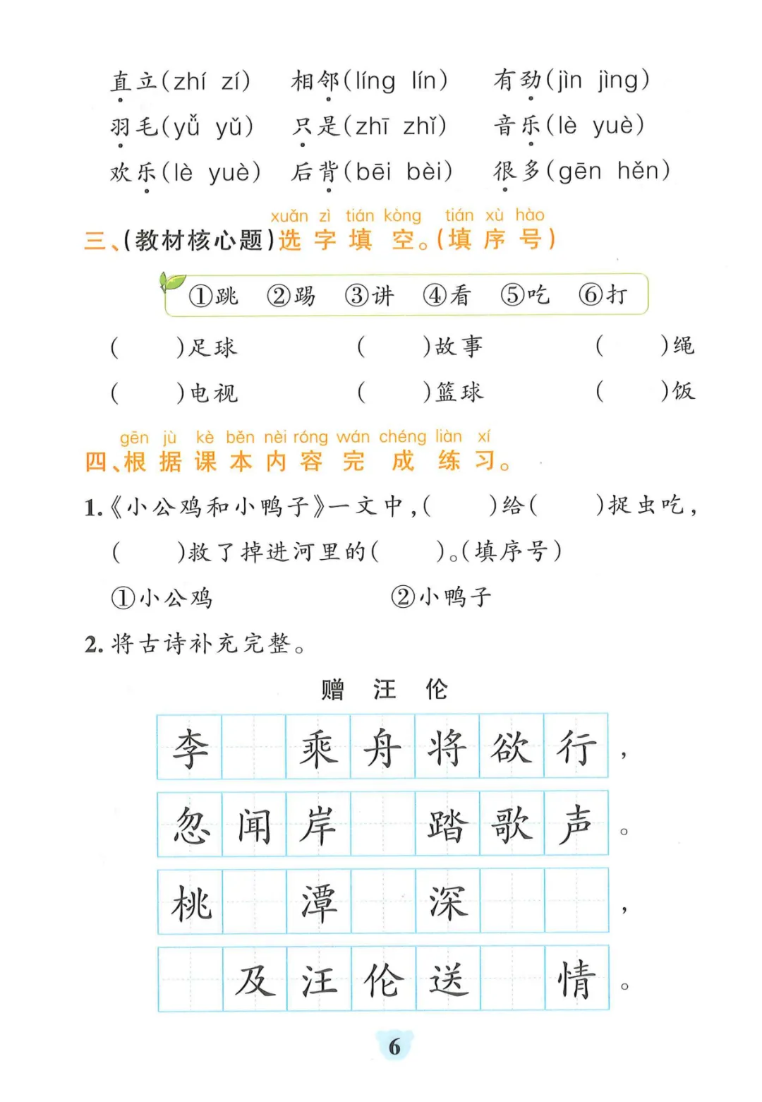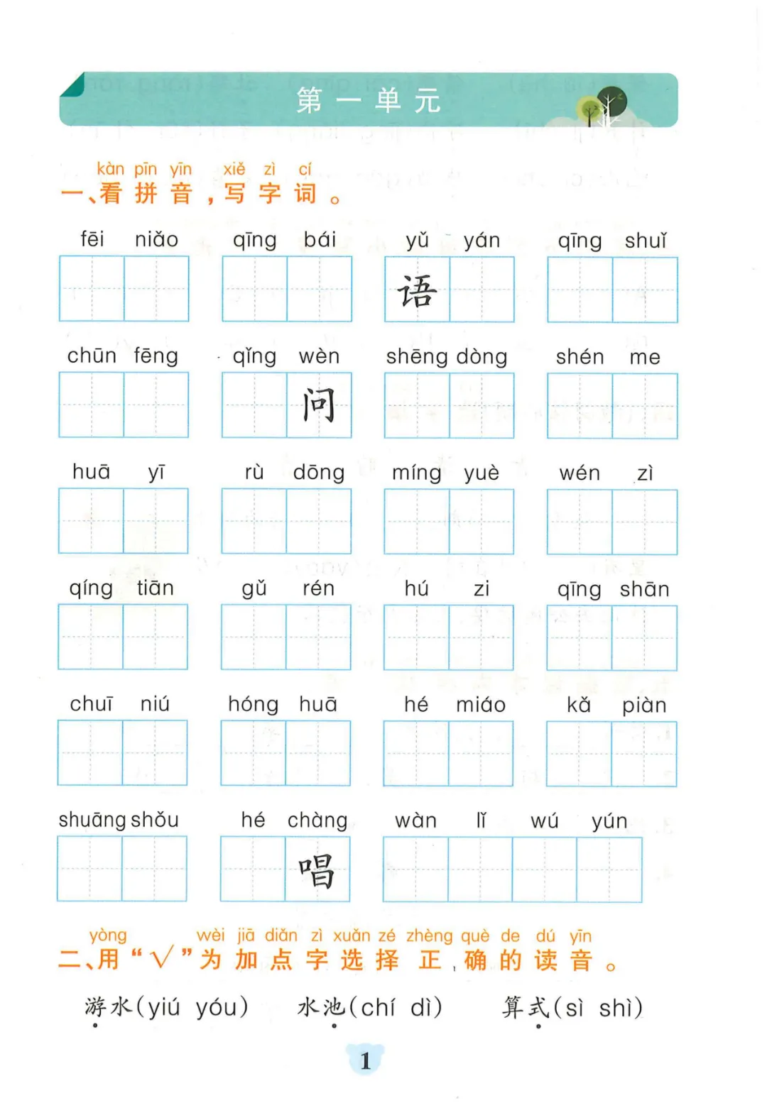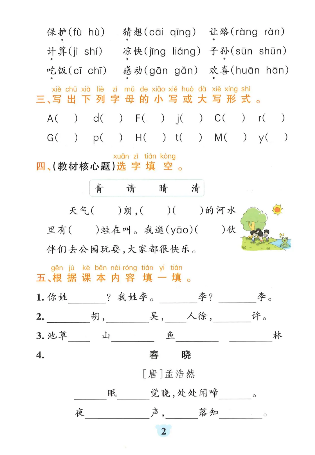 【一年级下册语文】【人教部编版】 看拼音写词语+课文内容填空|完整高清电子版