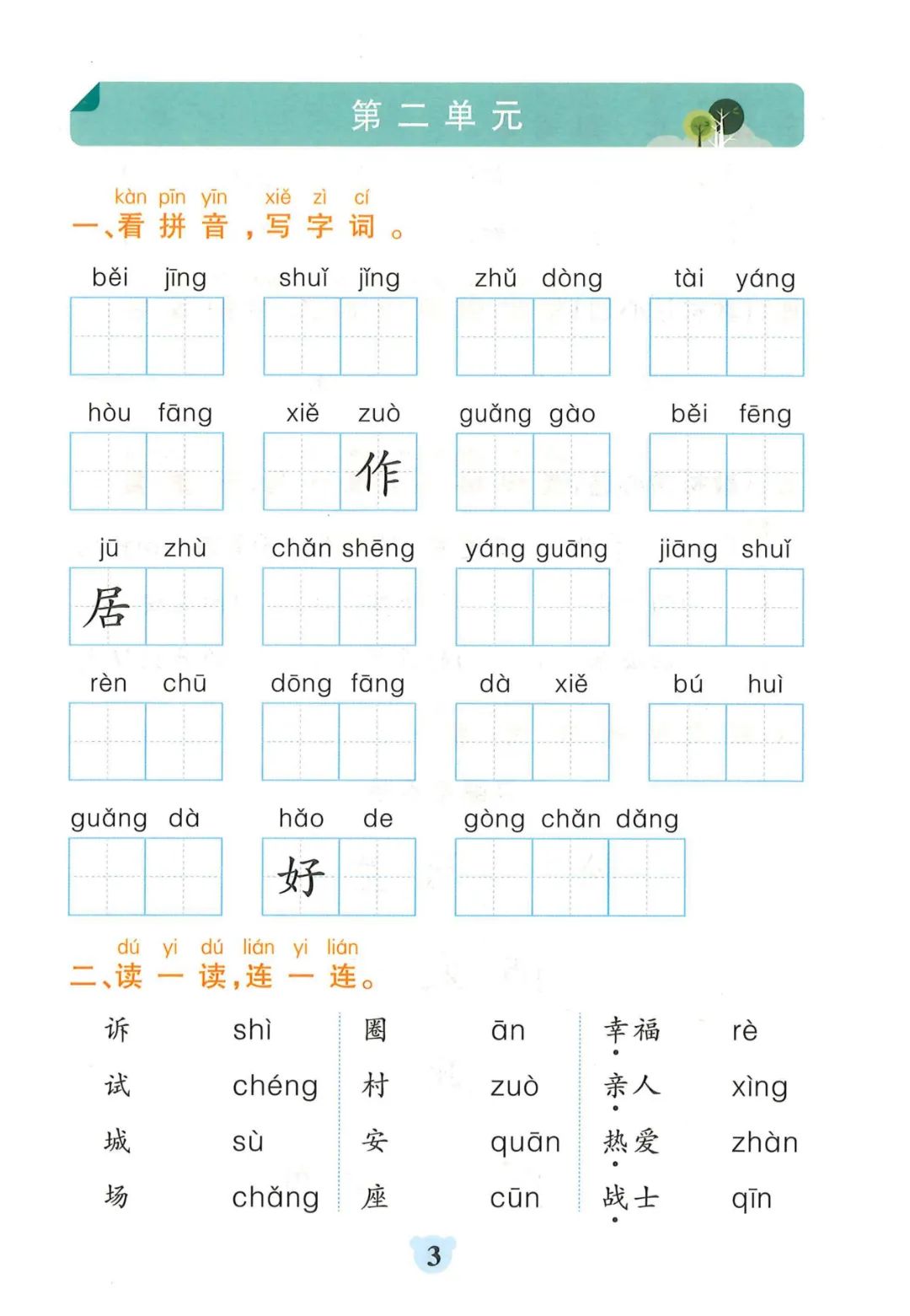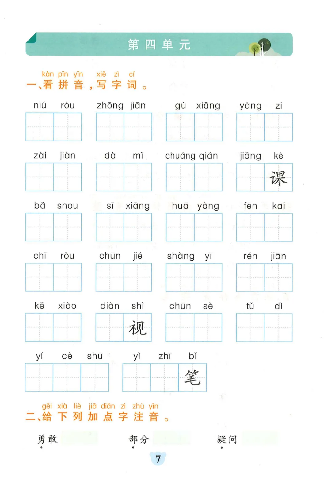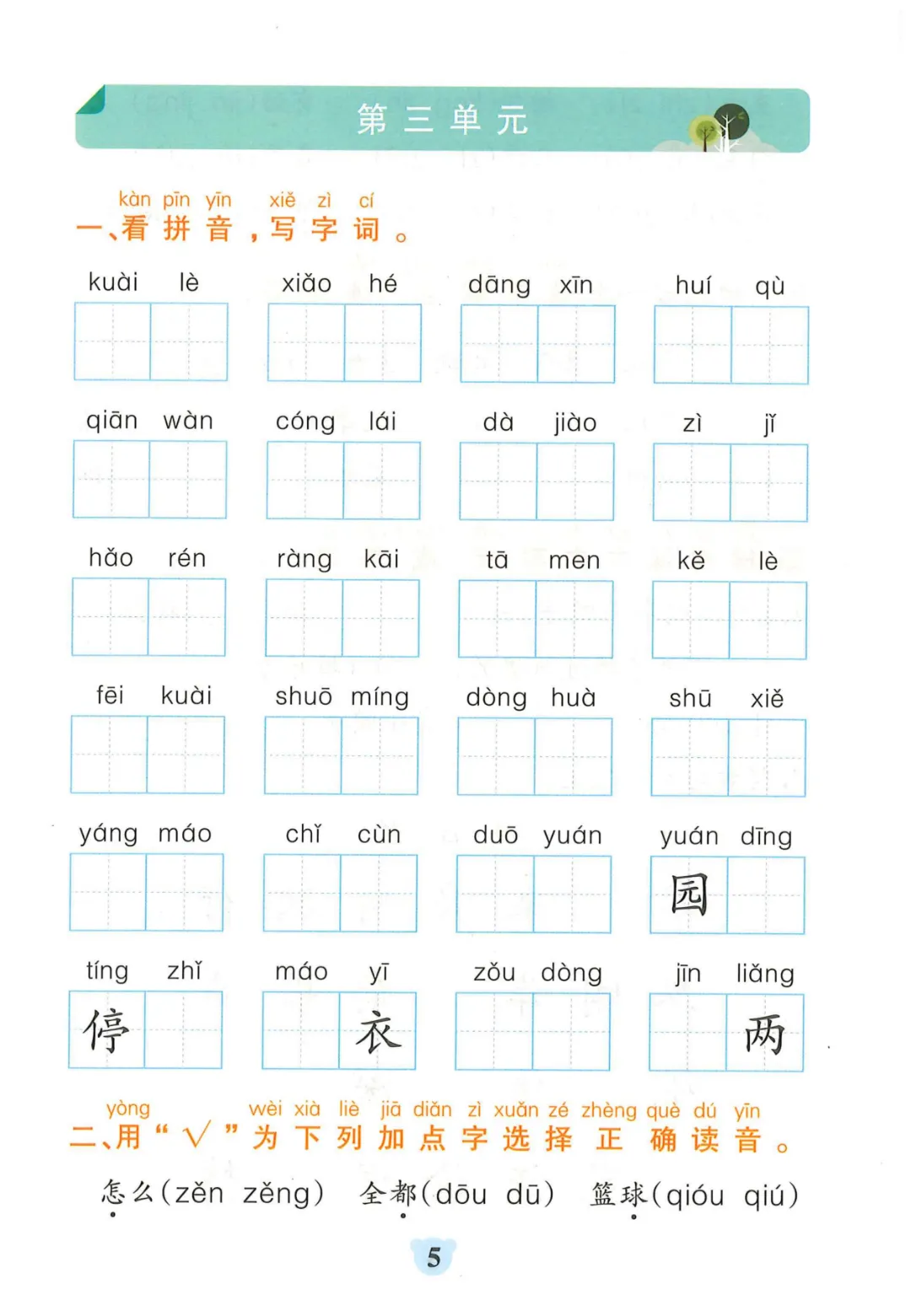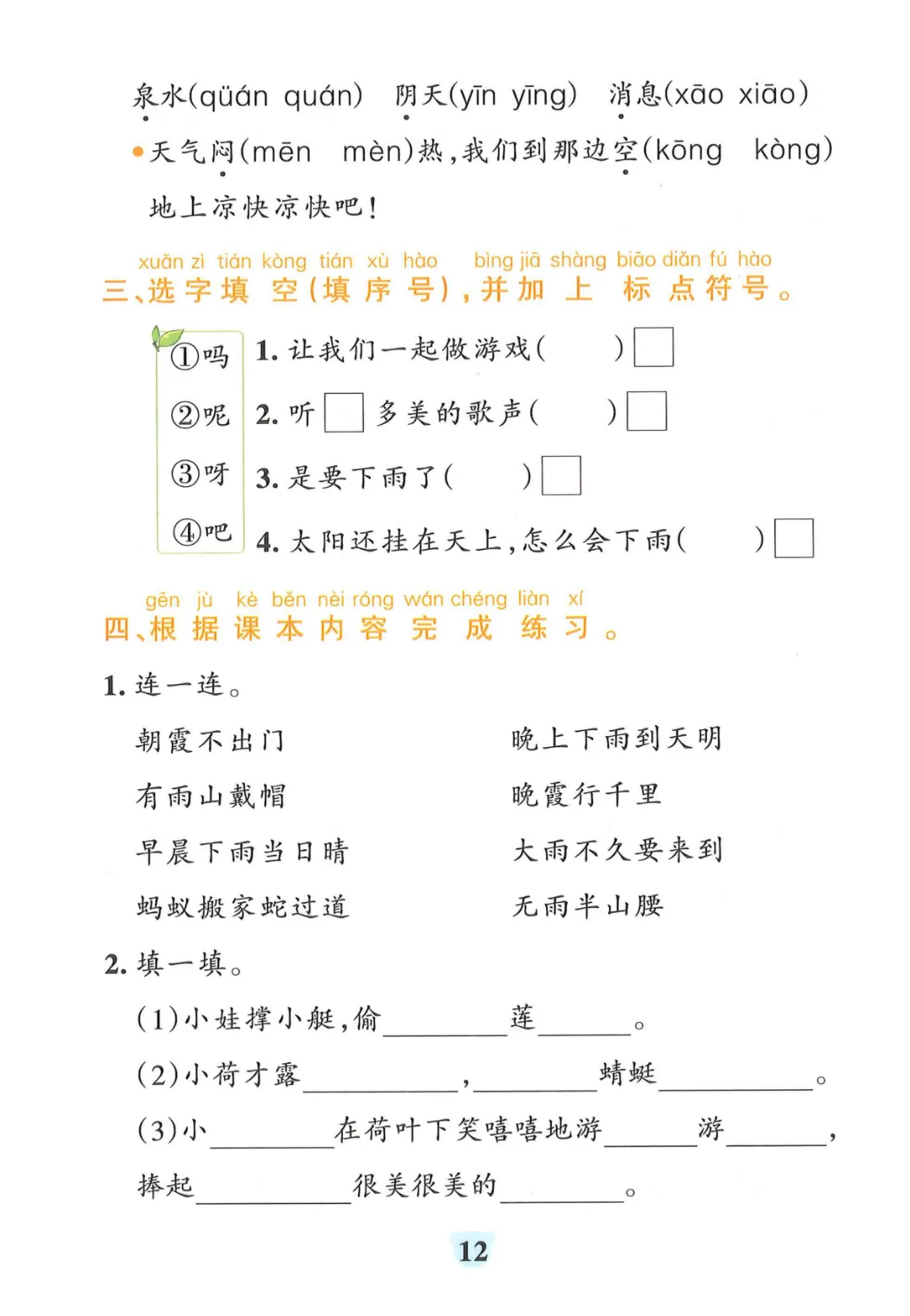 【一年级下册语文】【人教部编版】 看拼音写词语+课文内容填空|完整高清电子版