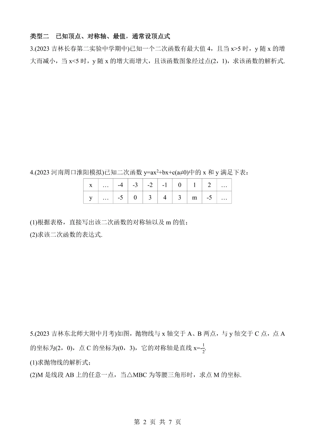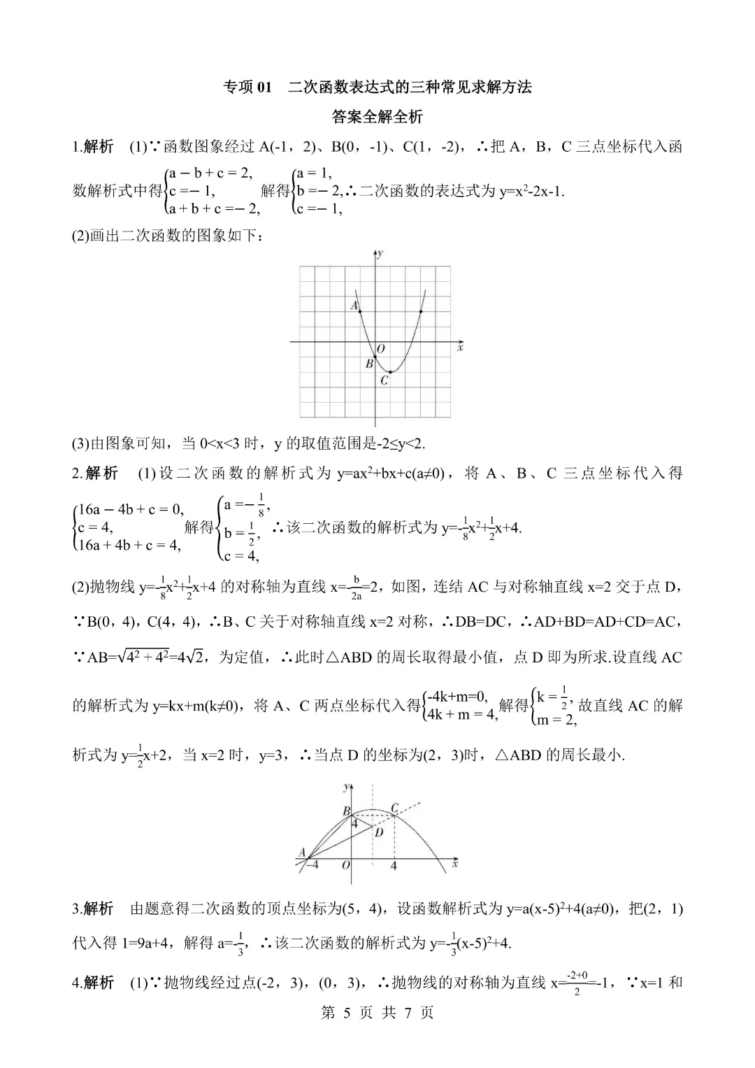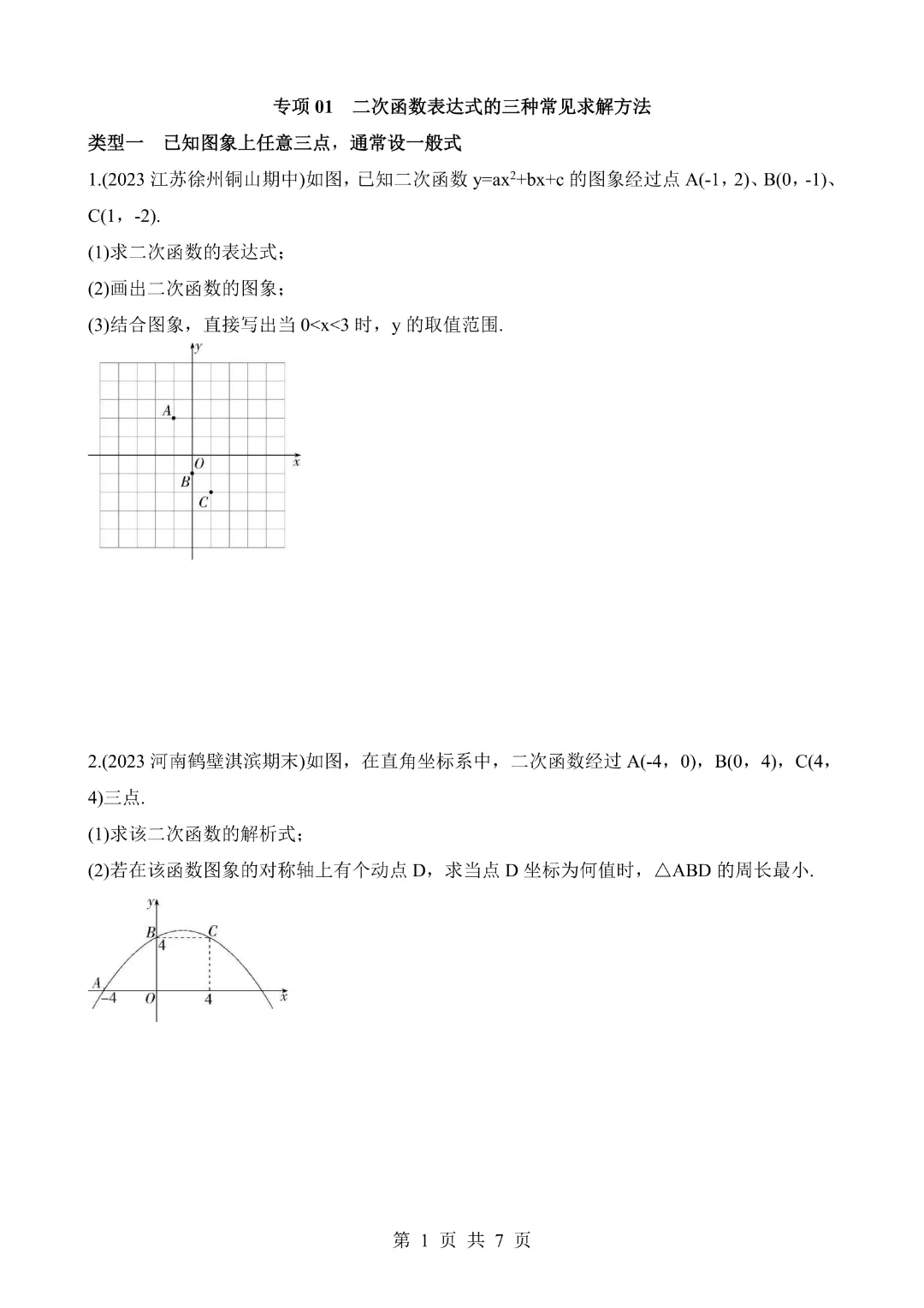 【九年级下册数学华东师大版】初三下册数学专项01二次函数表达式的三种常见求解方法,完整可打印