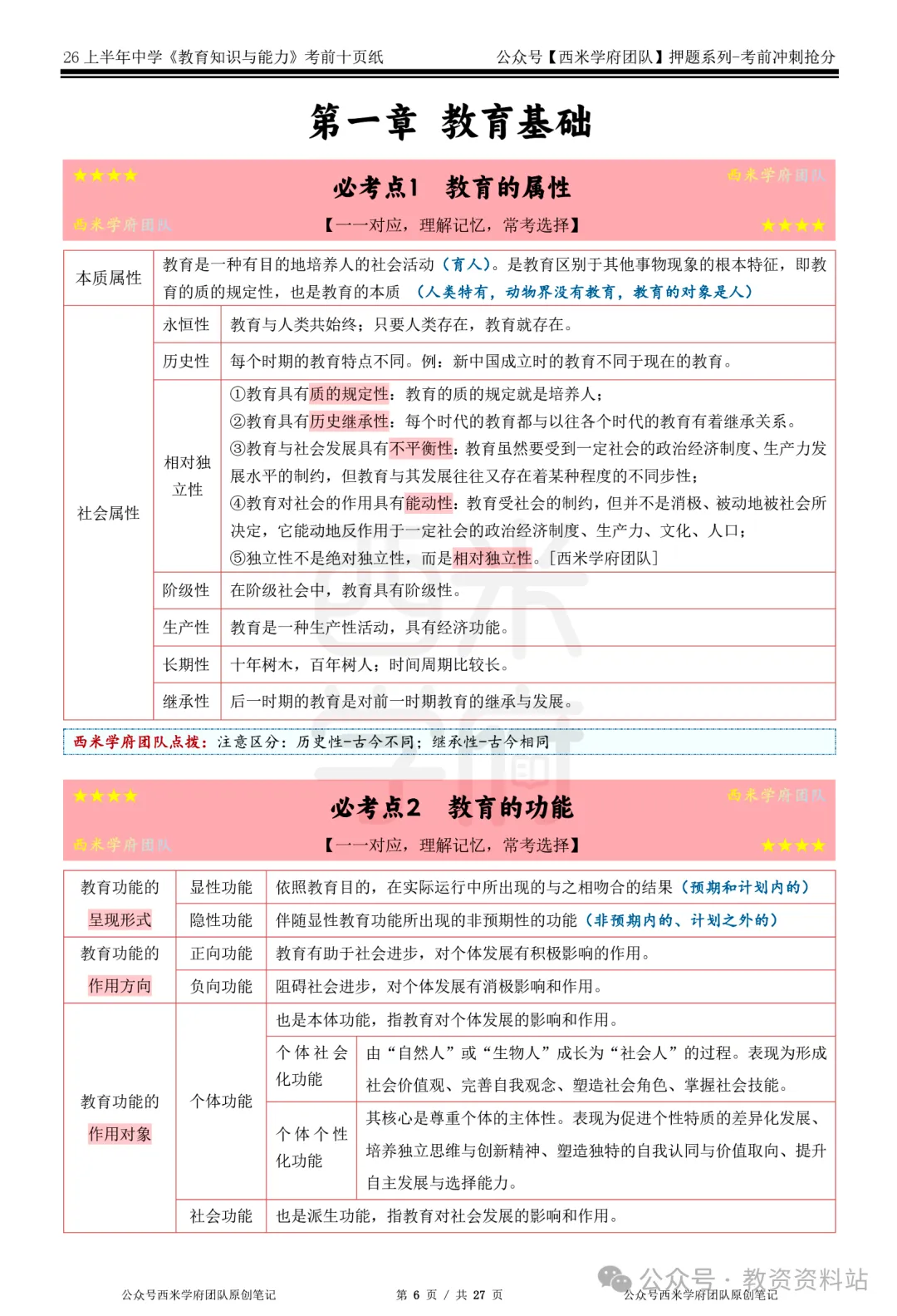第二部分:教资笔试的核心考点的二次筛选,考前冲刺抢分必背