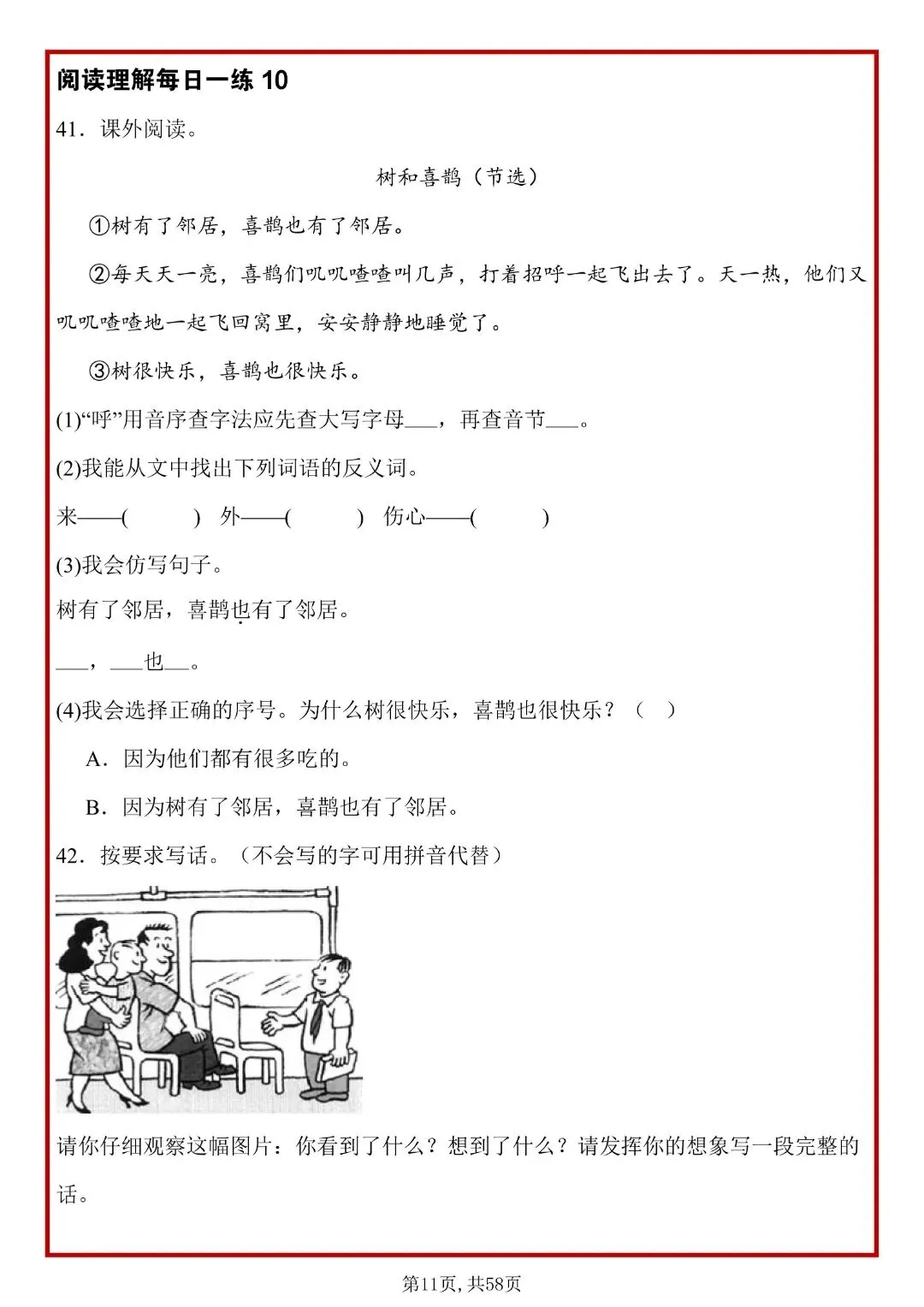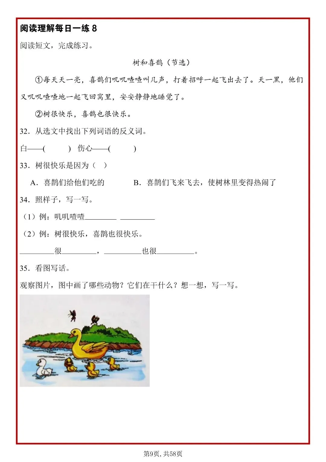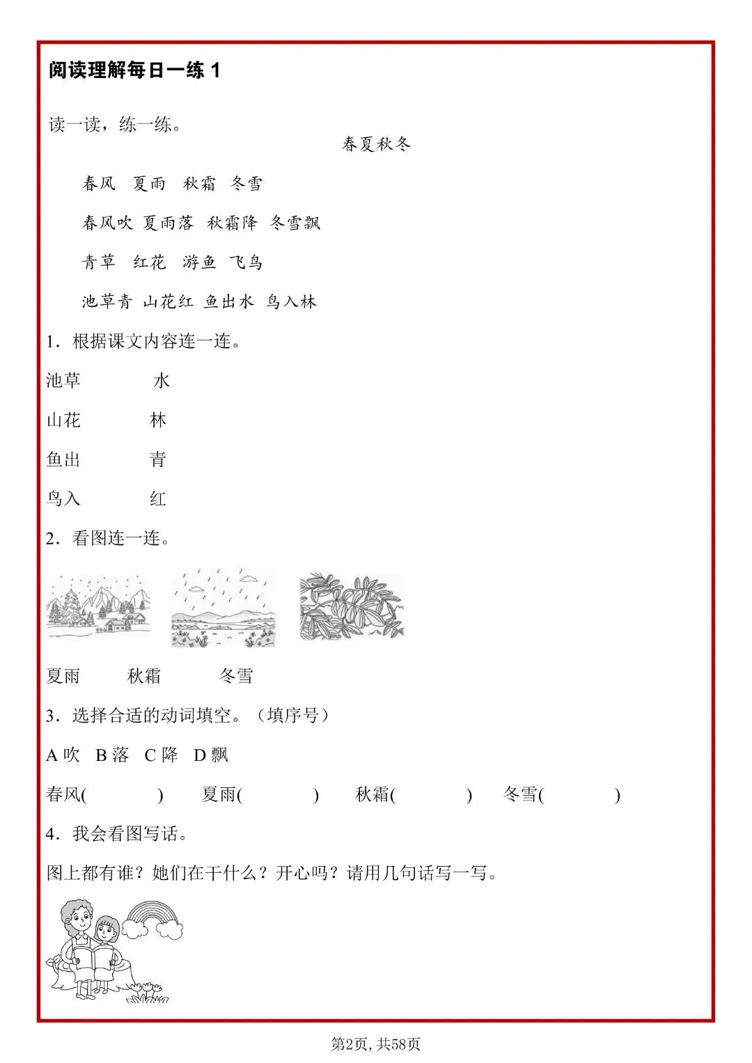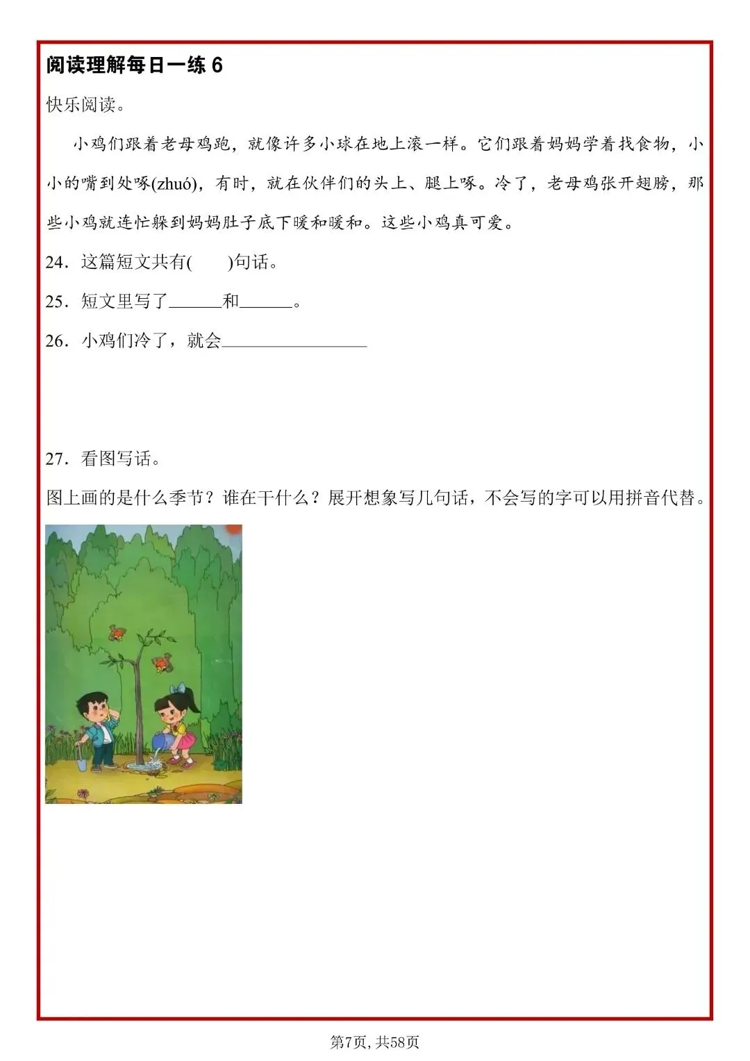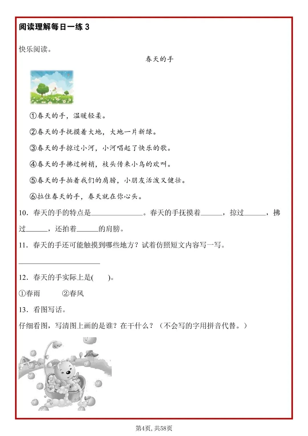 26春人教部编版一年级下册语文《阅读理解常考题型每日一练》,共58页,含答案,可打印