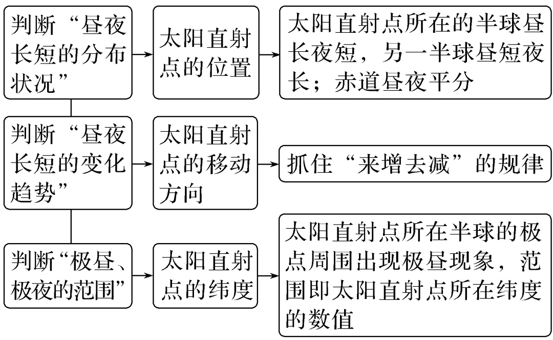(3)地方时12时当地正午时刻太阳直射的经线的地方时一天中日影最短日影朝向正南或正北(极夜地区除外)昼半球的平分线