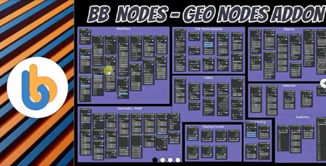 B.B. Nodes 是专为 Blender 几何节点工作流打造的高效节点增强插件,通过在几何节点工作区的「添加」菜单中生成专属自定义子菜单,一键解锁海量预制节点组,彻底告别重复搭建节点、手动拼接逻辑的繁琐流程,全面优化与提速程序化建模。