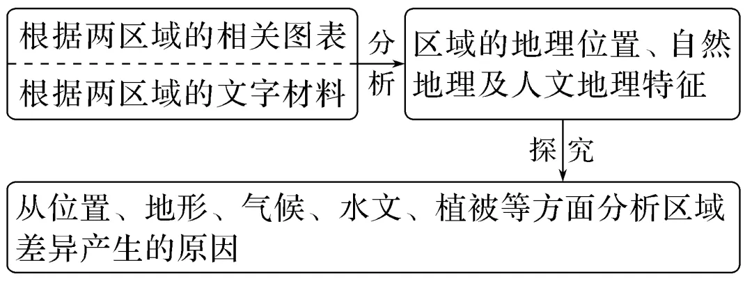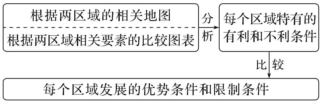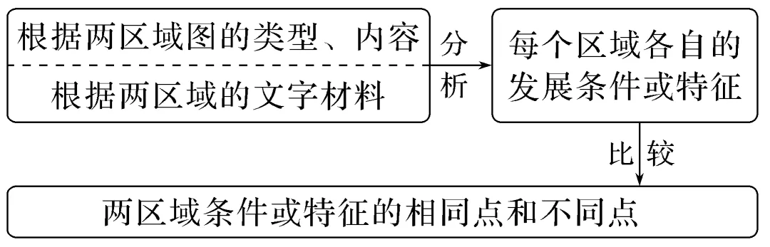 (1)比较分析区域条件或特征的异同点,其思维流程为: