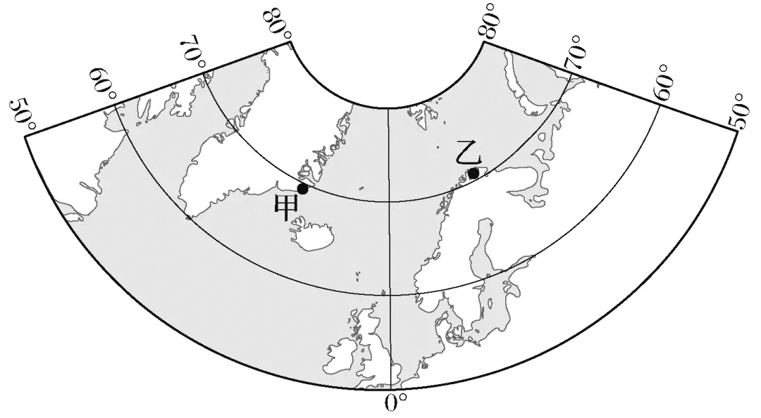 (2024·广东卷,9~10)峡湾是冰川U形谷后期被海水淹没而形成的槽形谷,极地气候峡湾几乎常年被海冰或冰川覆盖,而温带气候峡湾全年几乎没有海冰覆盖。如图示意在北半球发育极地气候峡湾的甲地和发育温带气候峡湾的乙地位置。据此完成1~2题。