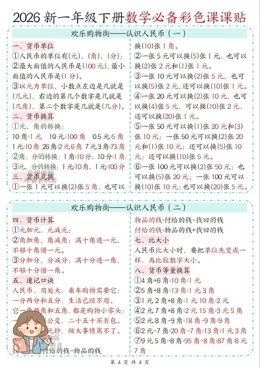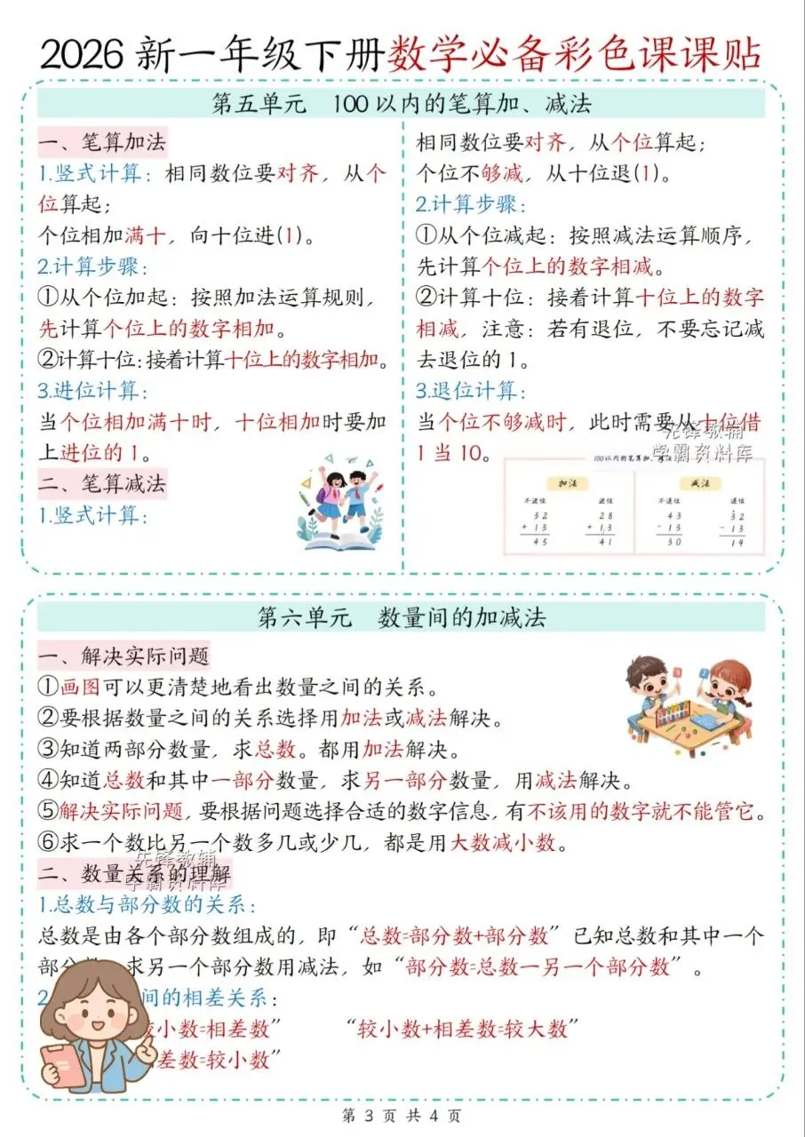 今日分享~2026新版一年级数学下册《必备课课贴》