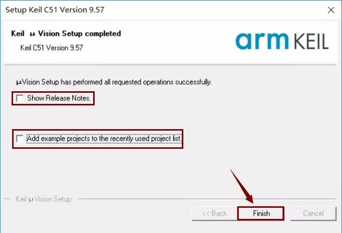 9. 取消勾选“ShowRelease Notes”和“Add example…”,点击“Finish”。