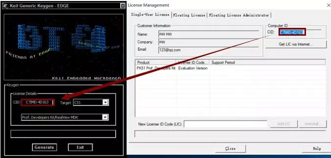 14. 复制软件许可证管理器中的“CID”,在注册机的“CID”框中粘贴。