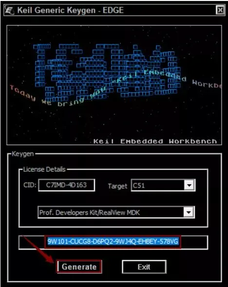 15. 点击“Generate”并复制上面框中生成的激活码。