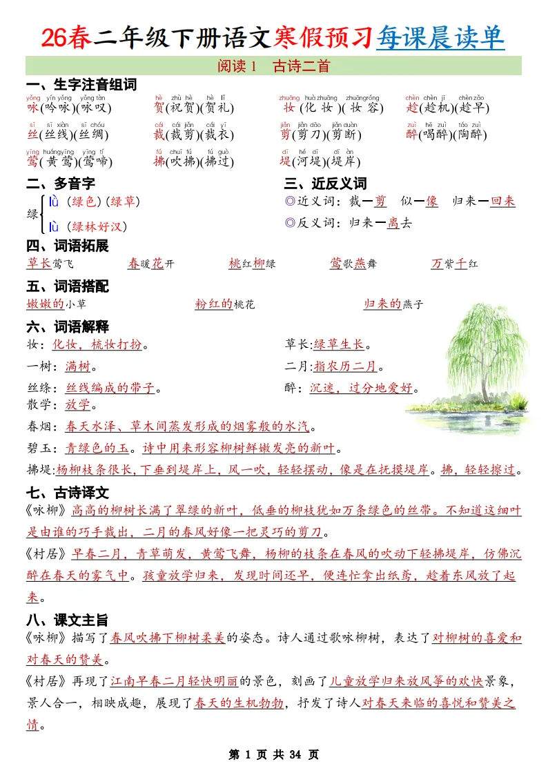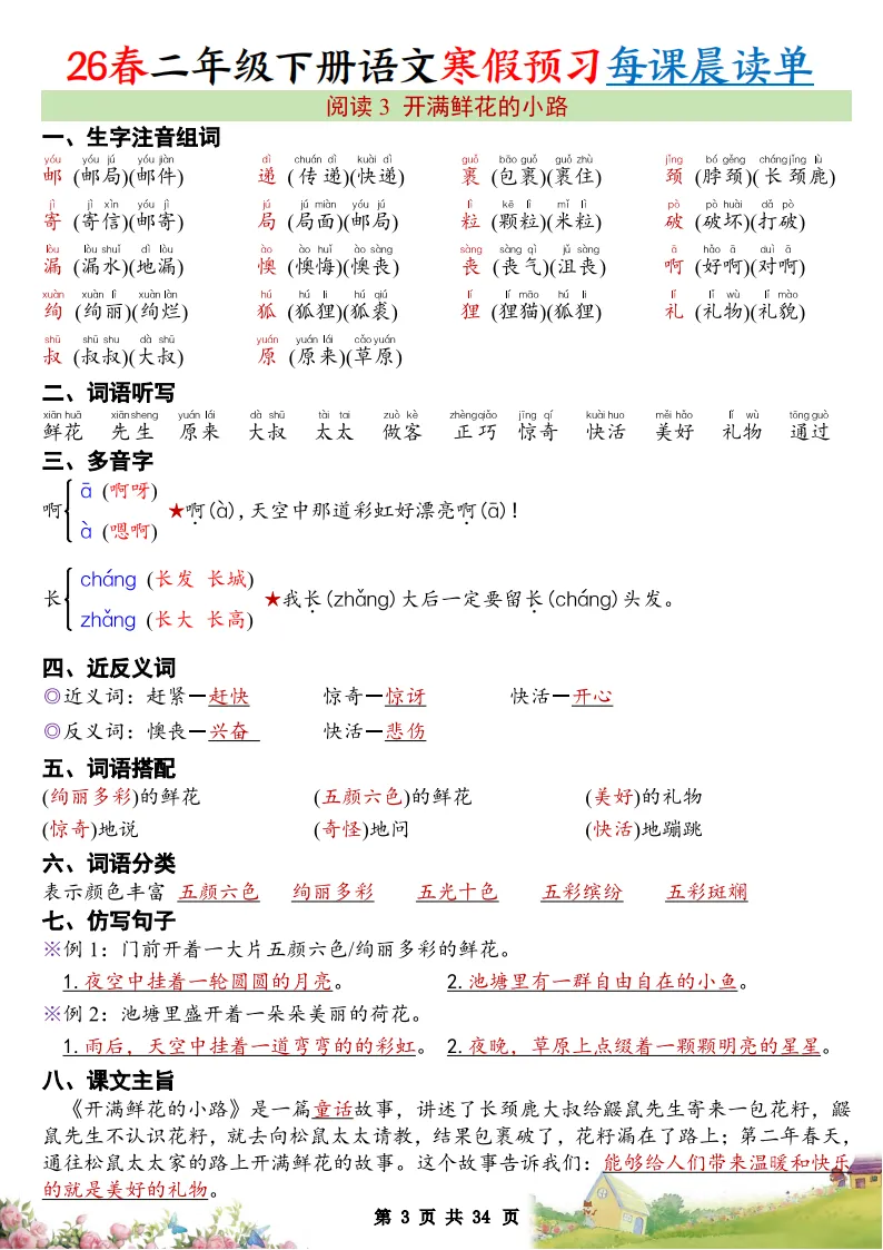 大家好,今天为大家分享一份超实用的2026春小学语文预习资料,帮助孩子充分利用寒假,提前适应新学期的学习节奏。