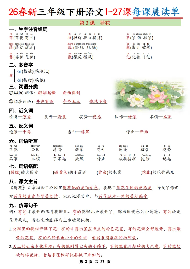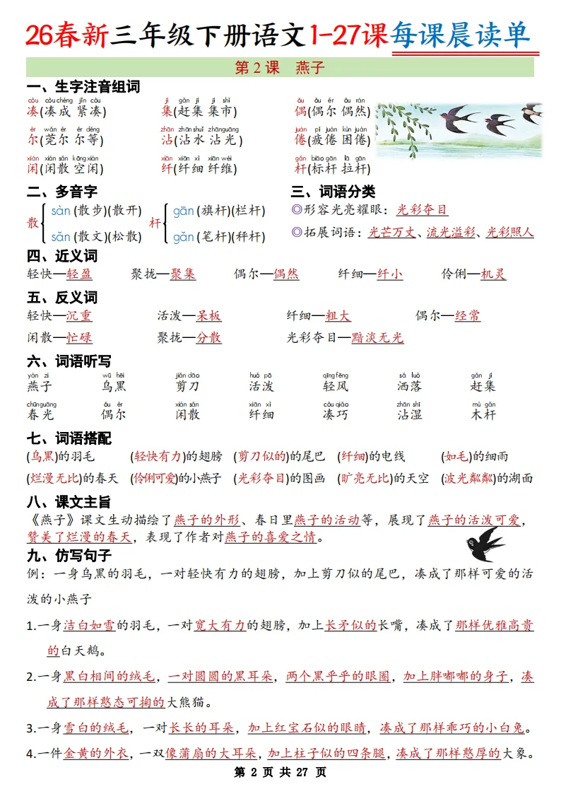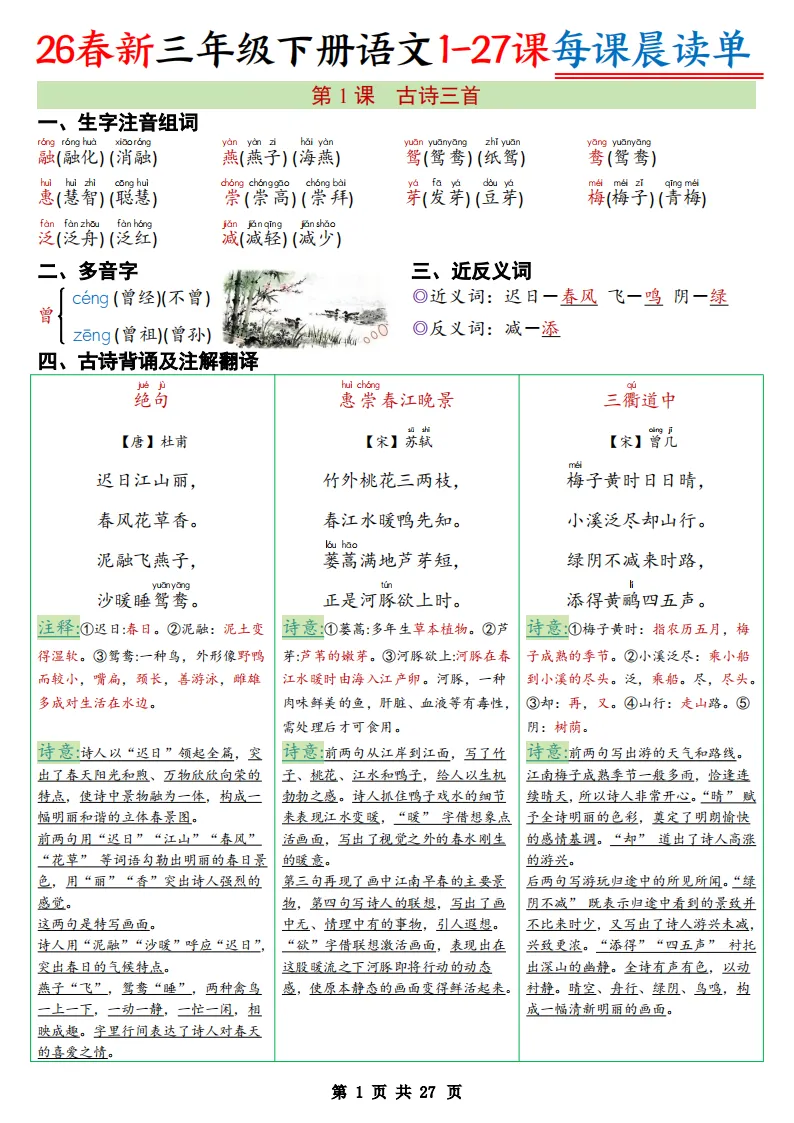 【免费下载】2026春小学语文1-6年级下册每课预习晨读单,寒假预习必备 | PDF高清电子版可打印