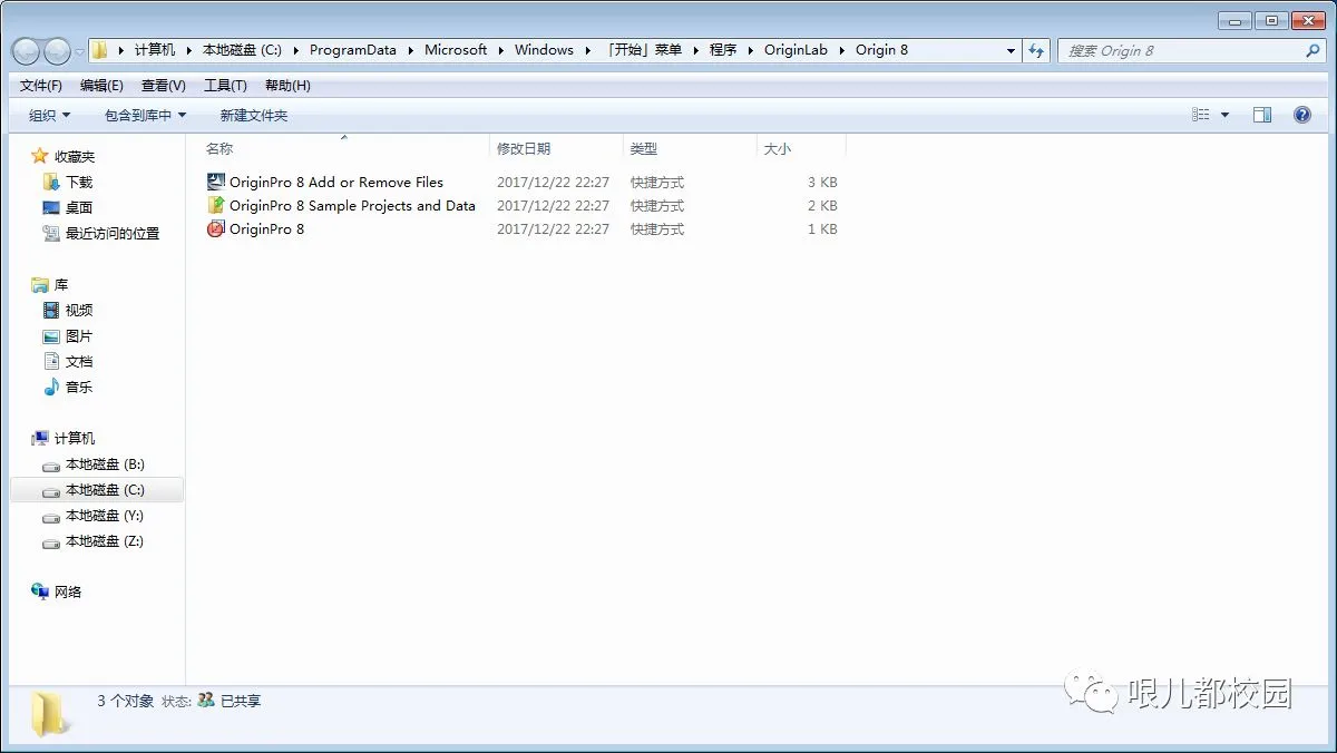 17.点击“Finish”后,电脑会自动弹出快捷方式所在文件夹,可将第三个“OriginPro 8”复制粘贴到桌面,便于以后打开软件;也可按照第23步的方法打开软件