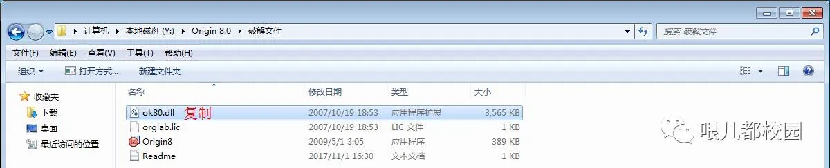 18.打开“Origin 8.0\破解文件”文件夹,复制“ok80.dll”文件