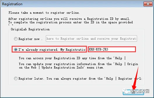 27.选择第二个选项“I’m already registered. My…”,然后输入注册码:KRK-RYR-JR3,最后点“OK”