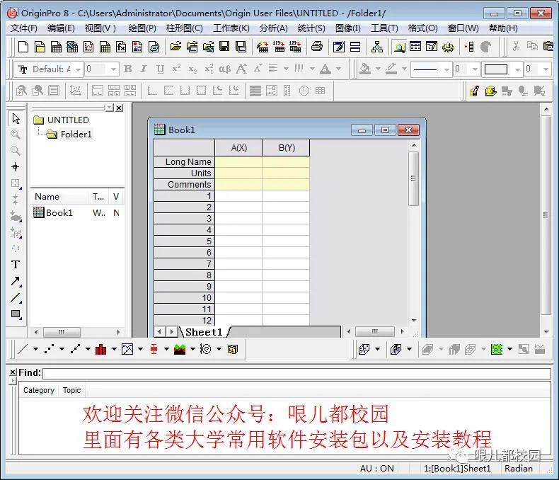 23.点击左下角(开始)菜单栏,进入所有程序,打开“OriginLab”文件夹,再打开“Origin 8”文件夹,鼠标左键单击“OriginPro 8”打开软件
