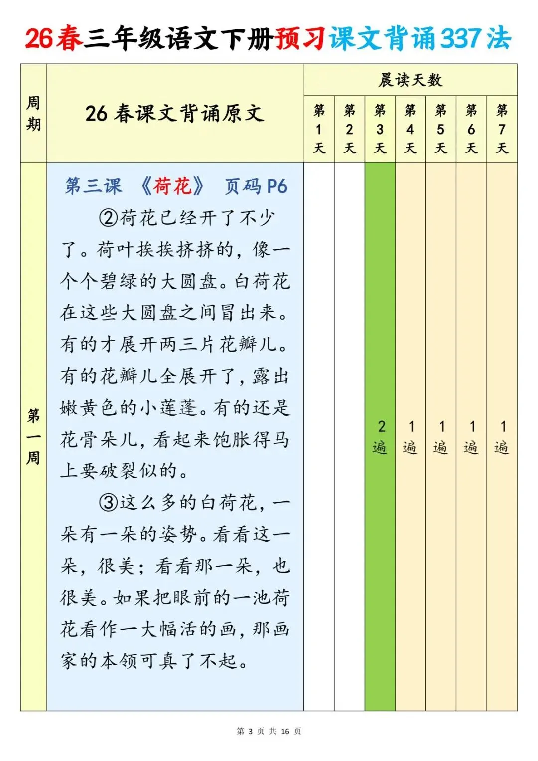 三年级(下)语文 预习课文背诵337法(电子版可打印)