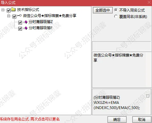 将以上代码分别复制粘贴到三个新指标中,并设置好名称和文件名(如指标锦囊)