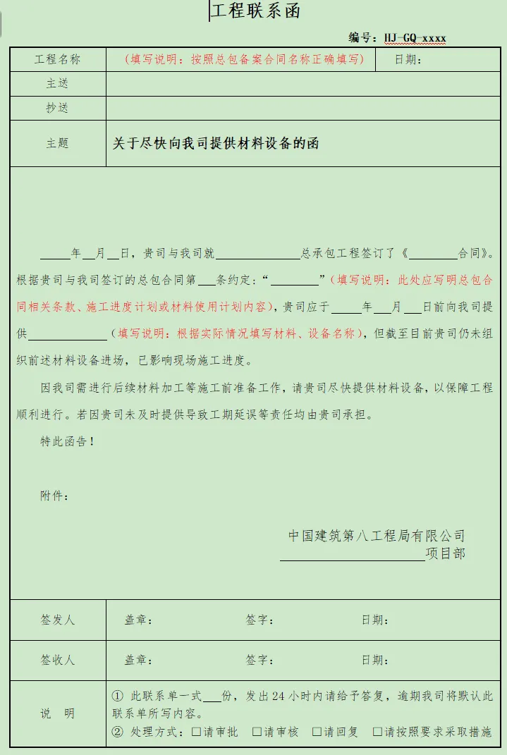 【免费下载】K4541期-名企小筑八局工程函件模版 15套