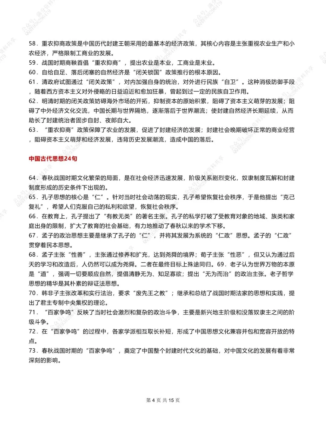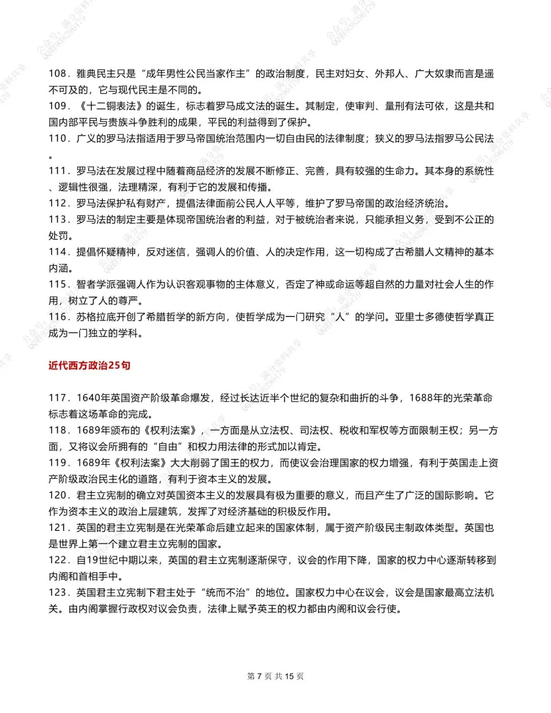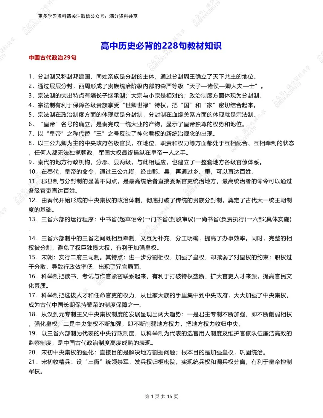 高中历史必背的228句教材知识(pdf分享) 点击图片可观看高清版,文末有获取打印版方式 (完整版15页,部分展示) 领取完整电子版: ①:点一点右下角的“赞”和“在看”,感谢! ②:点击“关注”回复“高中资料”获取资料 点击下方“公众号”关注,可以进入主页哦!