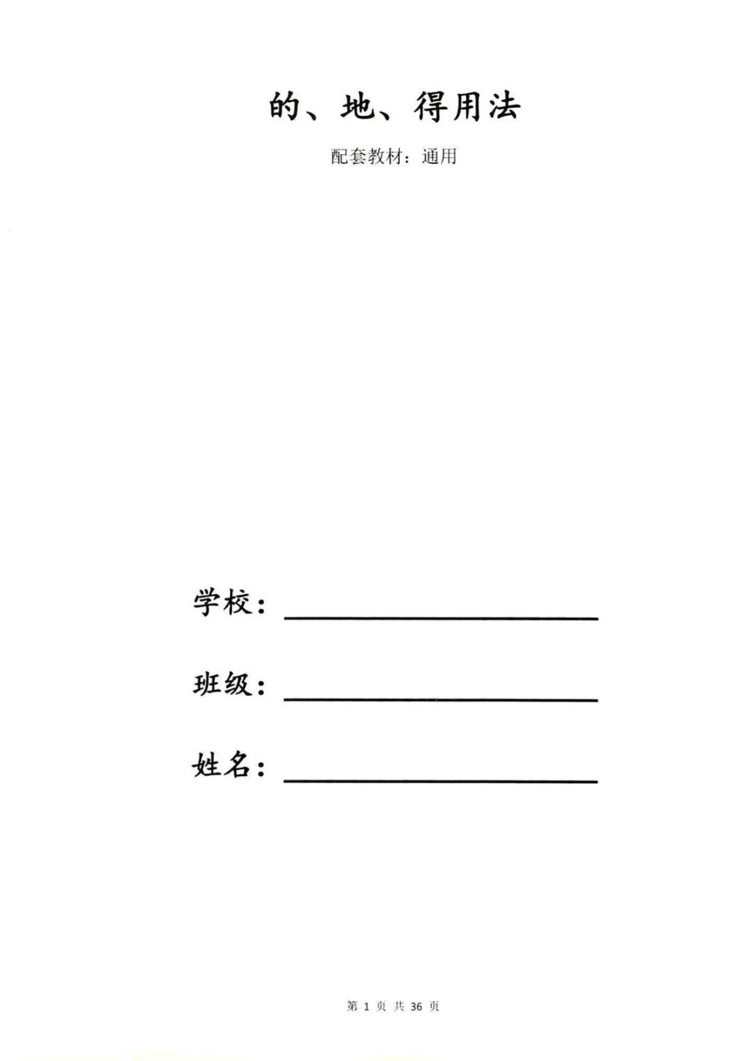 【免费下载】一年级(下)语文 的地得专项训练,PDF电子版,共37页,可打印