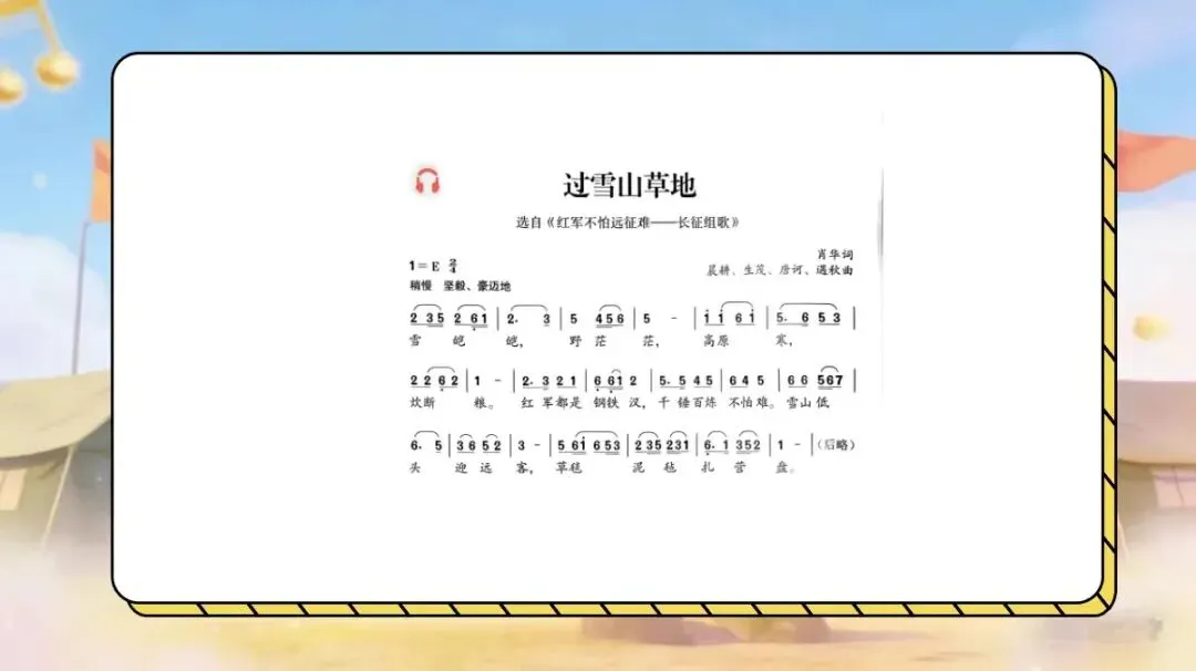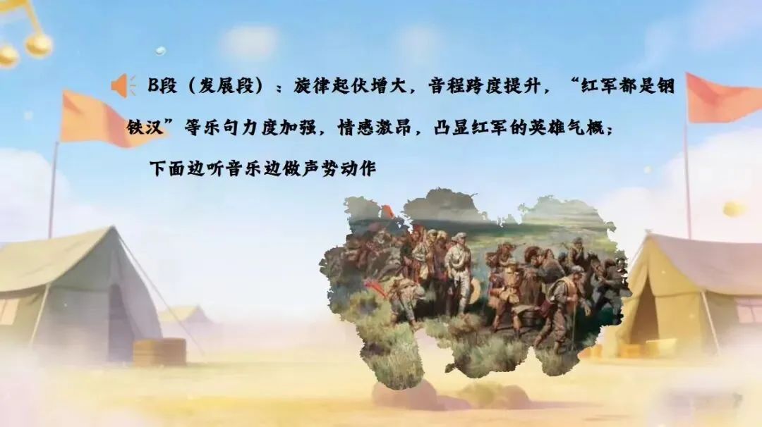 律特点。但部分学生对长征历史的认知较浅,导致情感共鸣不够深刻;在艺术表现环节,对装饰音的演唱掌握不够精准。今后教学中,应提前布置长征历史预习任务,结合更多史料视频丰富感知;同时增加针对性的发声练习,强化音乐技能,让红色文化的传承更扎实,实现审美与育人的统一。