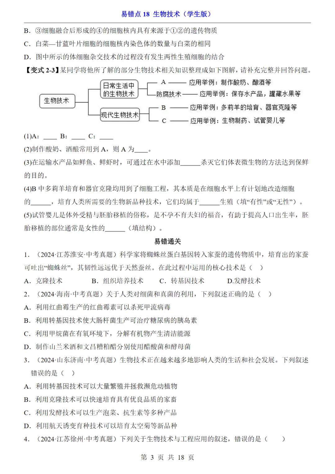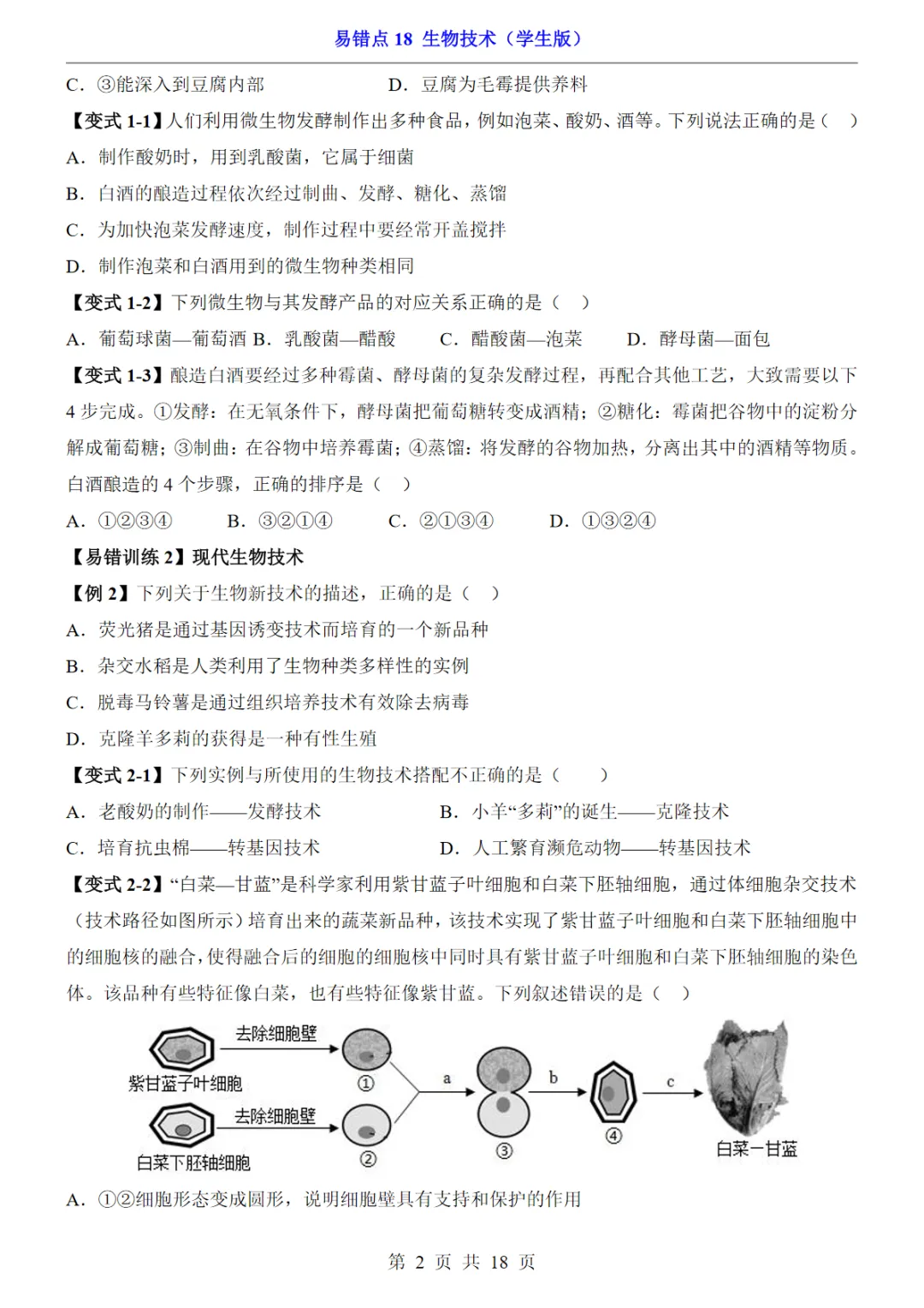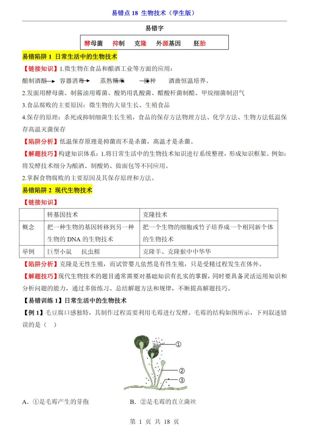【免费下载】会考专项生物易错点18 生物技术 电子版