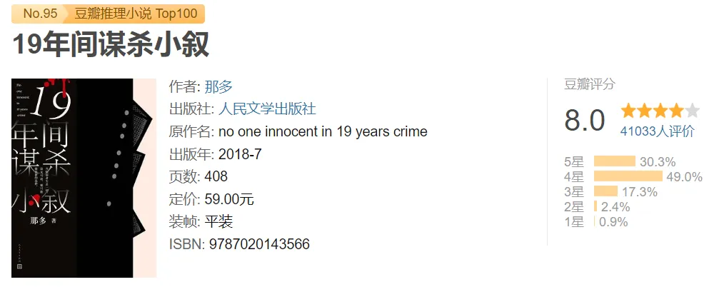 《19年间谋杀小叙》pdf+epub+mobi+azw3电子书免费下载 《19年间谋杀小叙》电子版下载链接,点击文章末尾左下方“阅读原文”自动跳转。 代找电子书加微:15710080257,加微备注领取电子资料可免费领取20T电子资料合集(古籍/电子书/小说/游戏/软件工具/电影/电视剧/动漫/PPT素材/教辅资料/烹饪教程/各类学习文档等电子资源)。 特别提醒:电子资料仅供个人学习使用,链接随时失效,请及时保存到个人网盘!