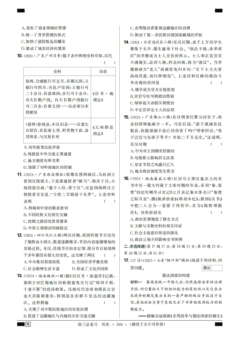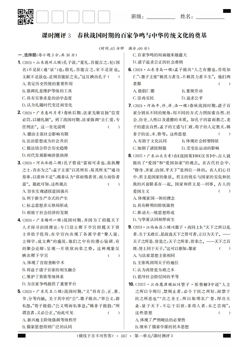 2026版金版新学案学生用书pdf版高考历史教材广东专版精准集训