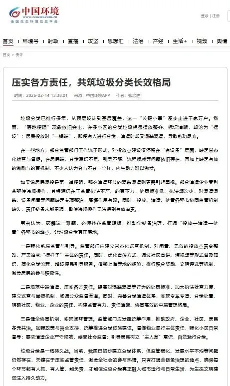 中国环境APP || 压实各方责任,共筑垃圾分类长效机制