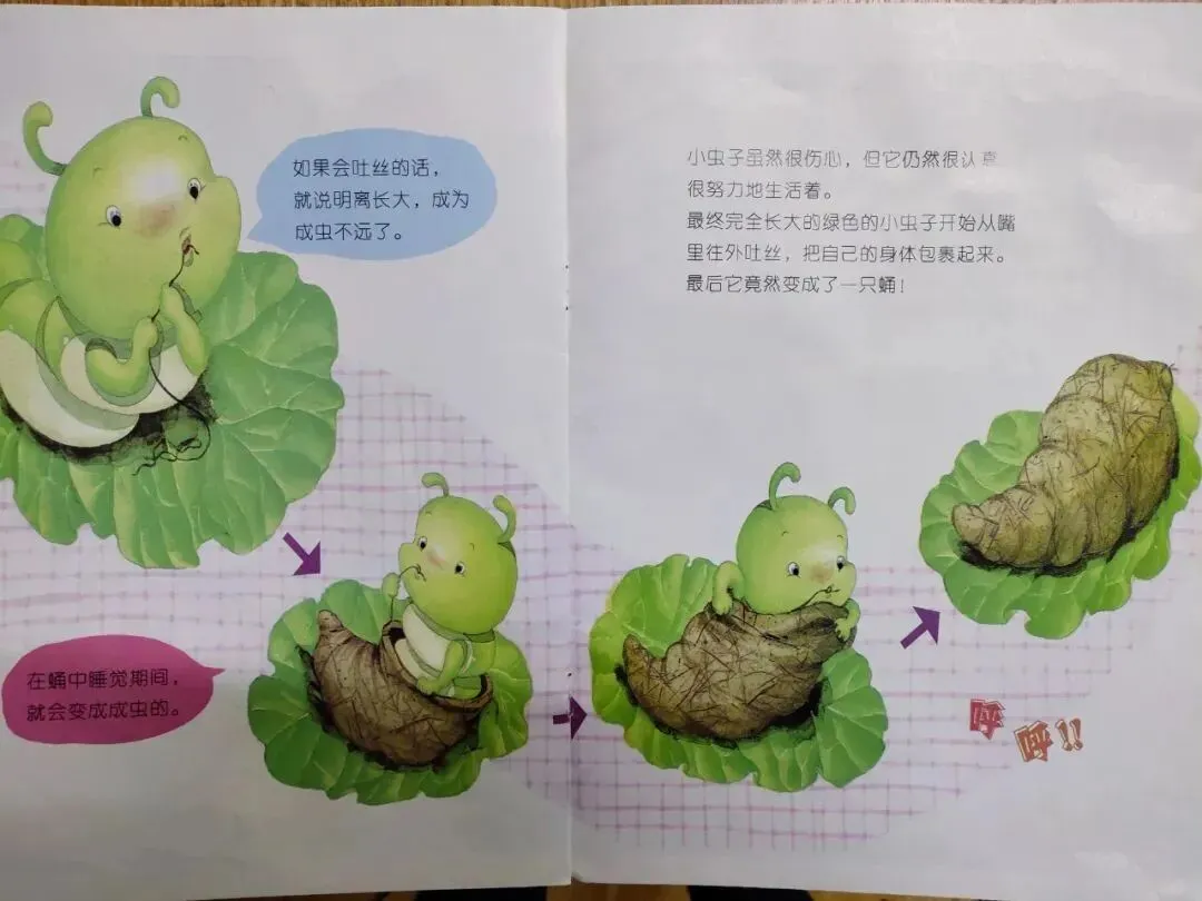 通过菜青虫的成长历程,生动呈现昆虫的生命周期(卵→幼虫→蛹→成虫),让孩子直观了解自然界的奇妙变化。书中还融入蜕皮、保护色等科学知识,激发孩子对自然科学的兴趣,培养观察力和探索精神。