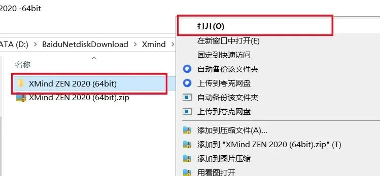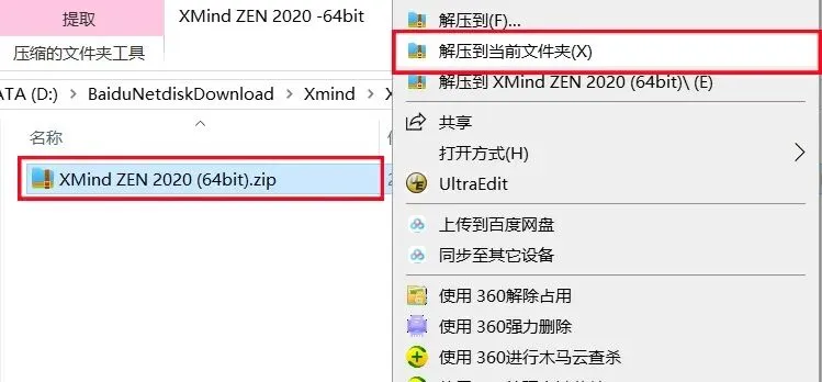 1.打开下载的Xmind软件安装包,鼠标右击压缩包选择【解压到当前文件夹】。