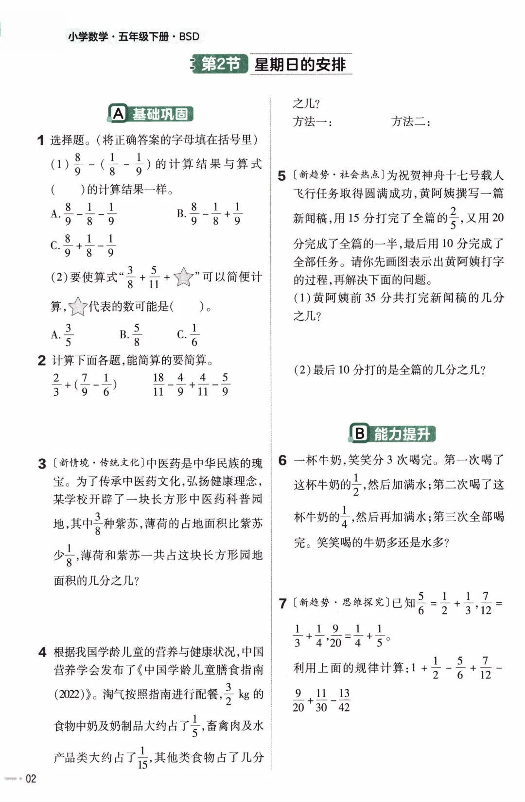 2026年春新版五年级下册北师大版数学《同步课本一课一练含答案》可打印