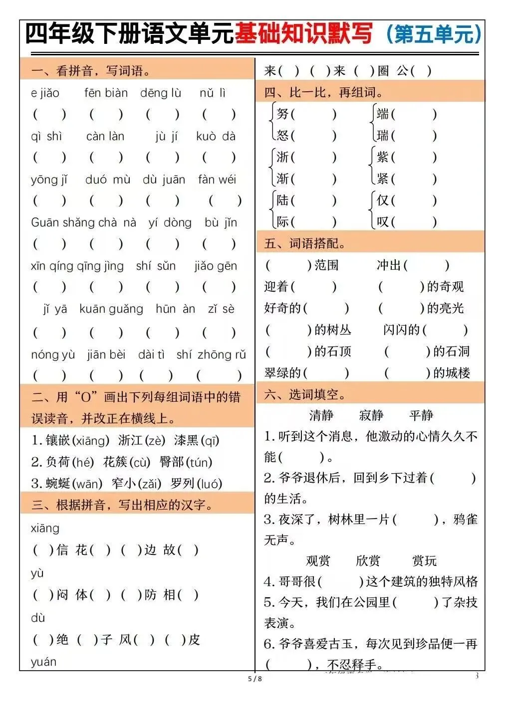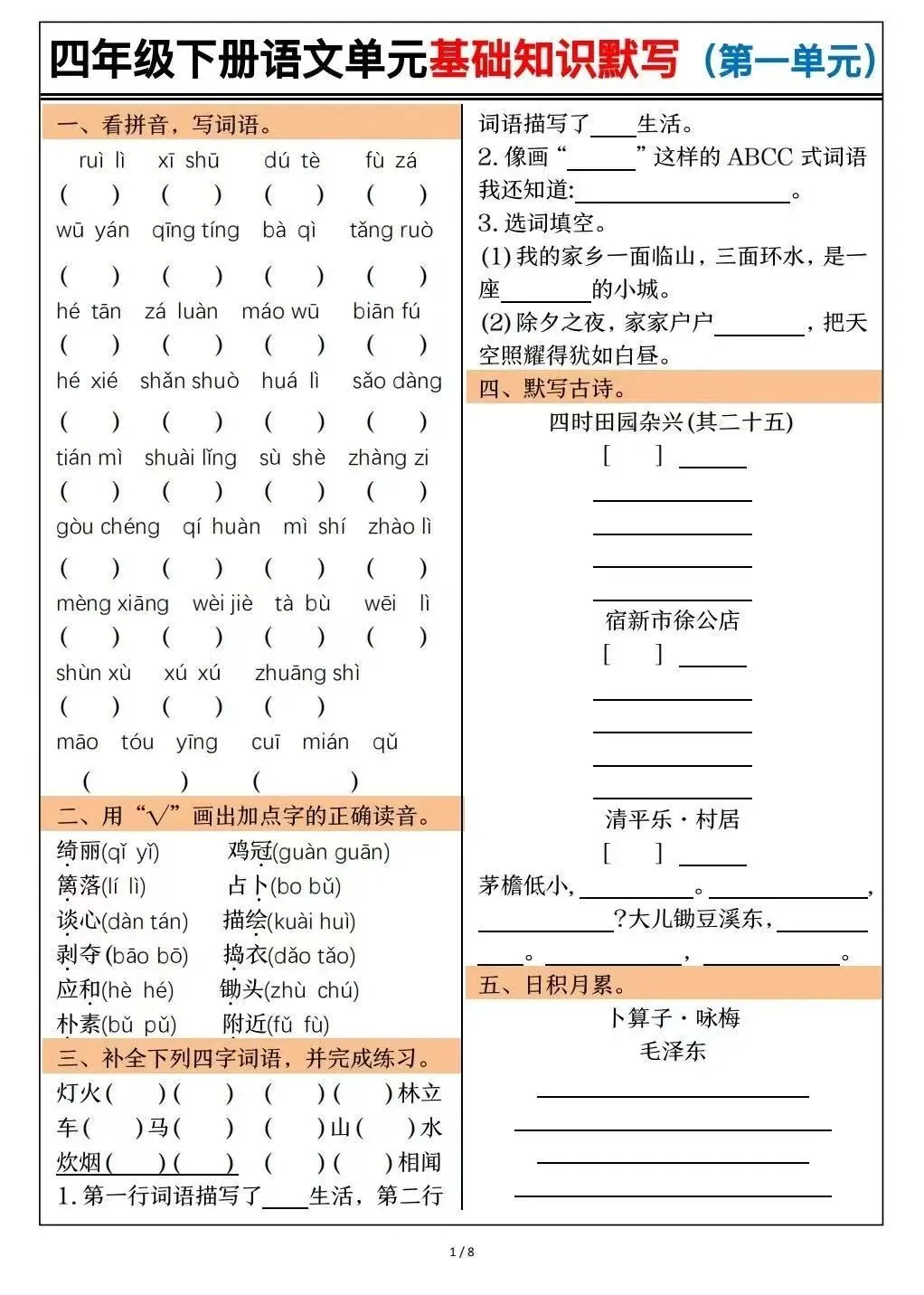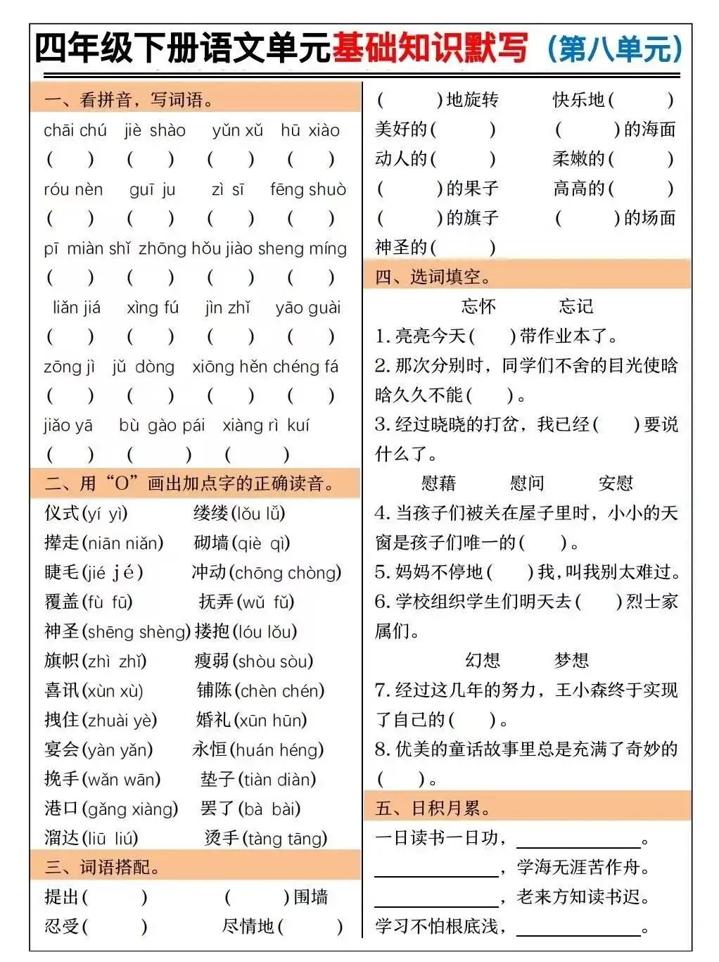 基础知识默写(有完整版可打印)