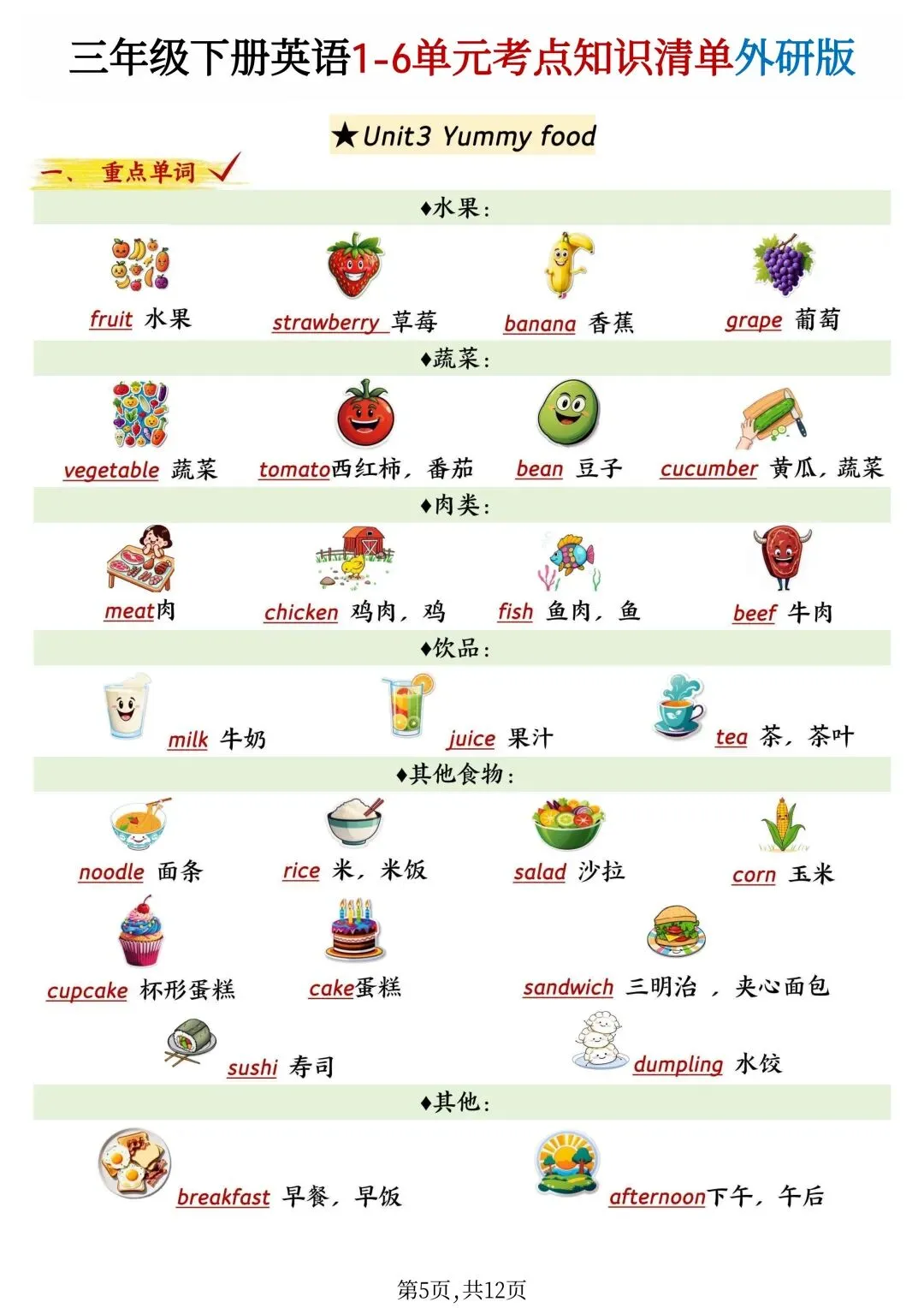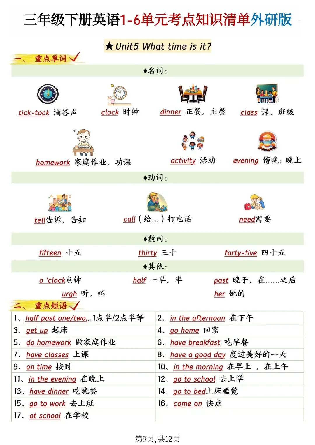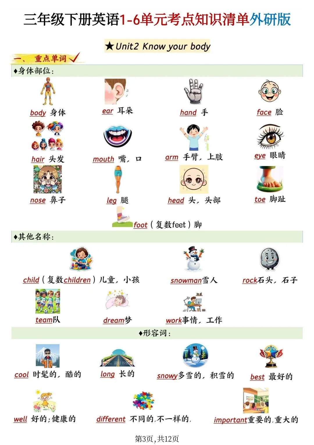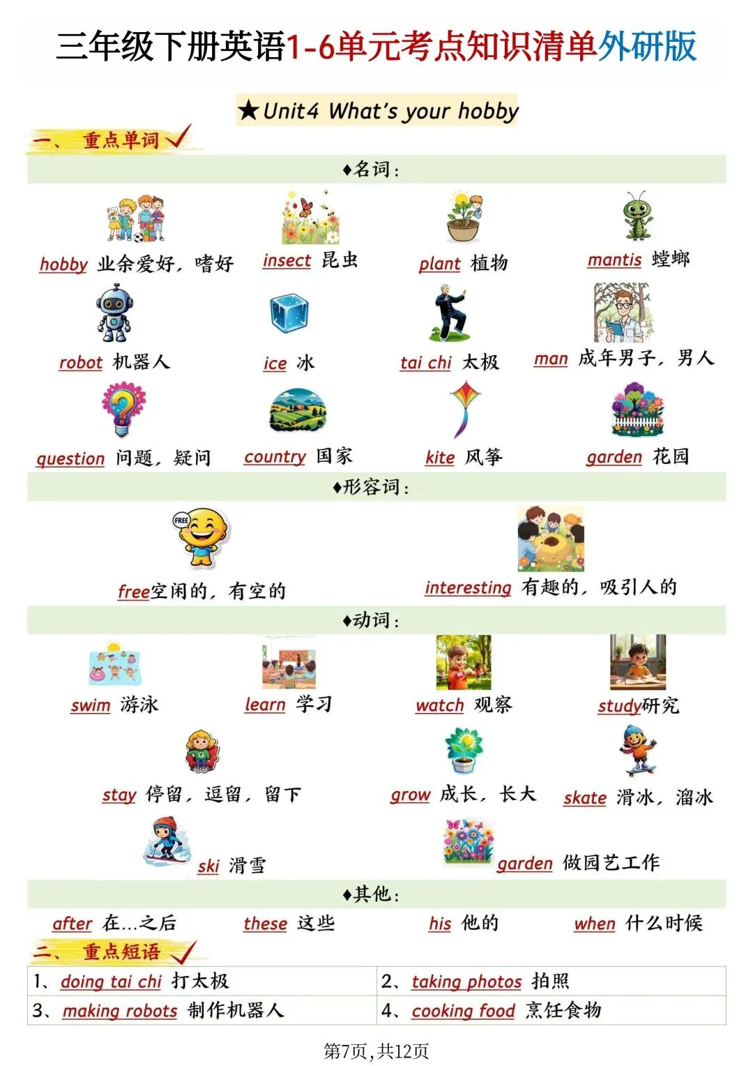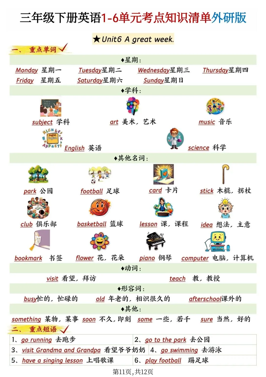 南星伴学营今日给大家分享26年春新版三年级下册英语外研版1-6单元考点知识清单,有完整电子版可打印!有需要的家长可以保存打印啦!