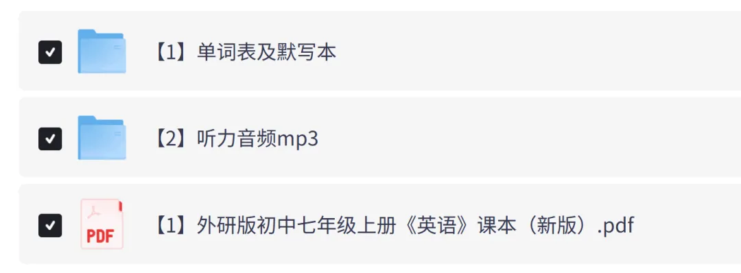 外研社版初中英语七年级上册电子课本教材+单词表+单词默写表+听力音频完整版(2026年新版教材),可下载打印!