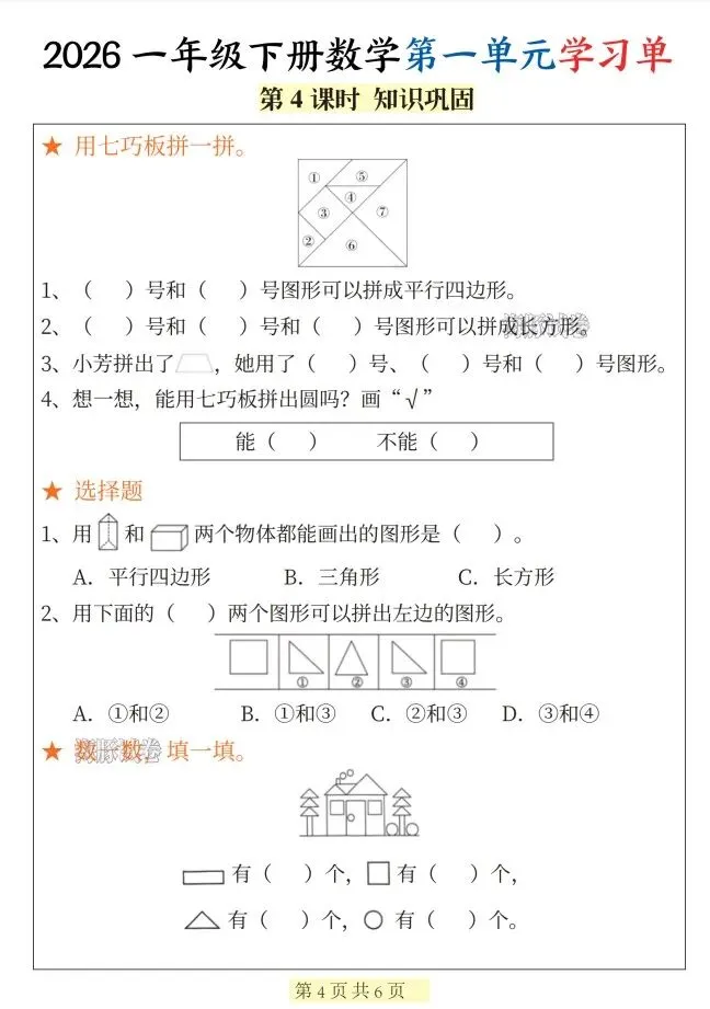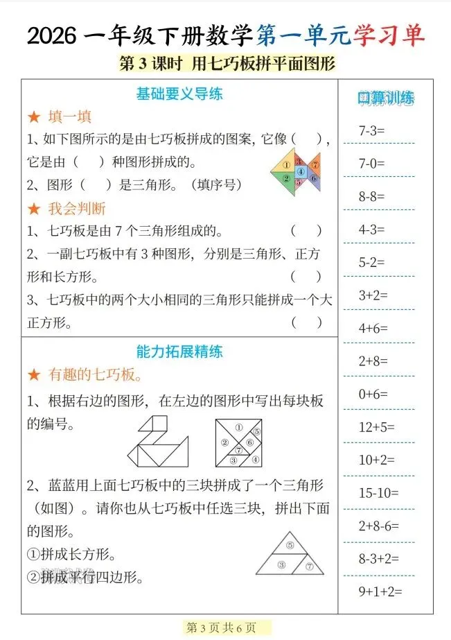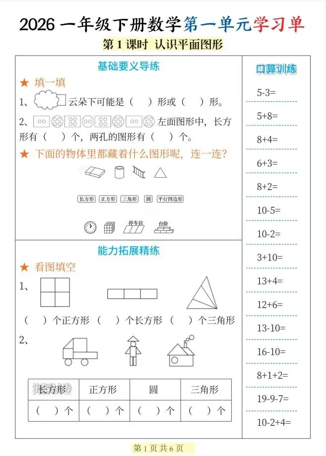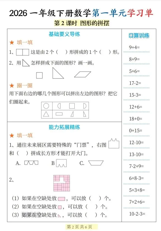 今天给大家整理了26新一年级数学下册第一单元学习单),转发给朋友或班级群,受益更多人,帮助孩子学习!