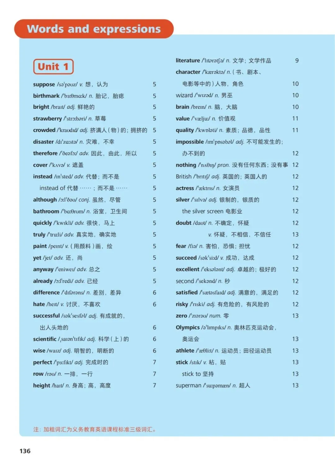 外研社版初中英语八年级上册高频单词30个